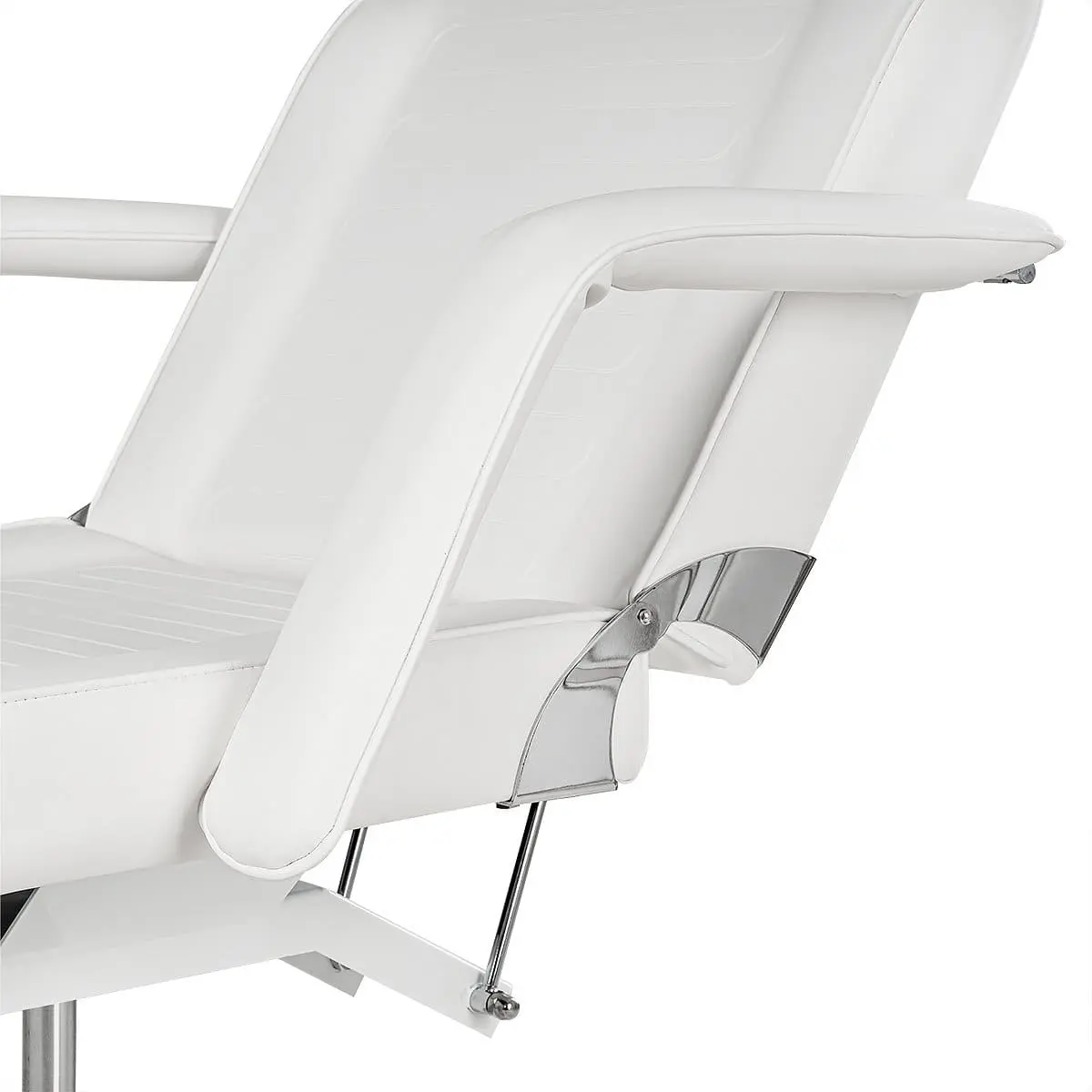 Стационарная косметологическая кушетка МД-319 на гидравлике с эргономичным сиденьем и мягкими съемными подлокотниками. Модель является трех секционной, с регулируемой спинкой и ножной частью. При помощи удобного механического управления специалист может быстро и без усилий подобрать оптимальное положение спинки, в зависимости от процедуры. Регулируемая ножная часть позволяет опустить или поднять ноги клиента. Обивка кресла-кушетки выполнена из мягкой матовой экокожи и плотного поролона оптимальной толщины, чтобы клиент с любой массой тела смог удобно расположиться и расслабиться, получая удовольствие от процедур.