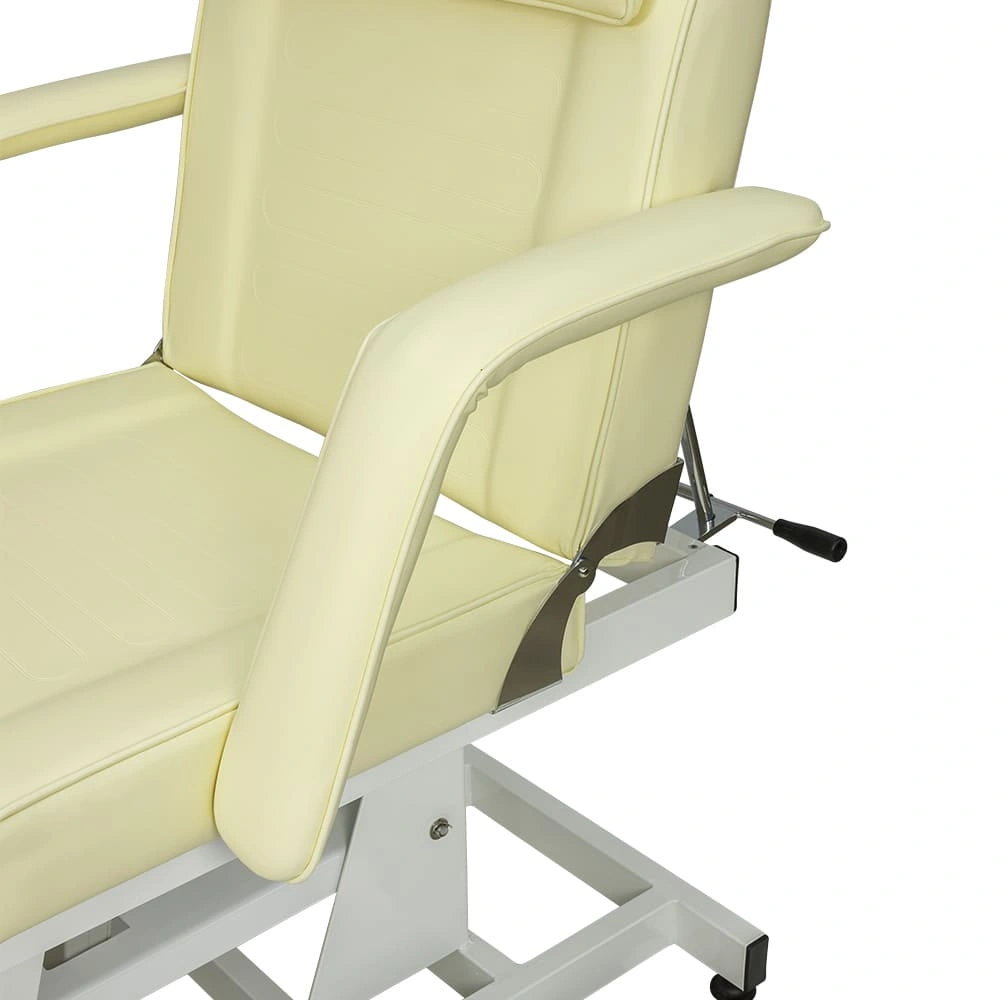 Комплектация: мягкие детали кушетки, подголовник, подлокотники, каркас на металлическом основании на подпятниках, электропривод (1 мотор) с пультом управления.