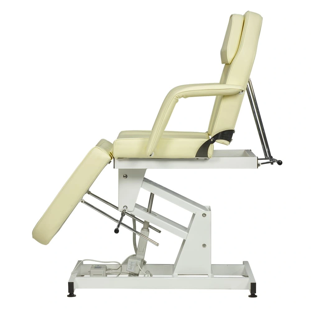 Классическая косметологическая кушетка МД-831 (1 мотор) для проведения косметических и массажных процедур. Она имеет современный дизайн, удобные размеры и надежную конструкцию, благодаря чему пользуется особым спросом среди покупателей. Основание металлическое, из усиленного профиля, поверхность которого покрыта влагоустойчивой краской. Для предотвращения скольжения по напольному покрытию и устойчивости кресла оно оснащено специальными регулируемыми подпятниками. Каркас так же изготовлен из металла и окрашен в белый цвет.