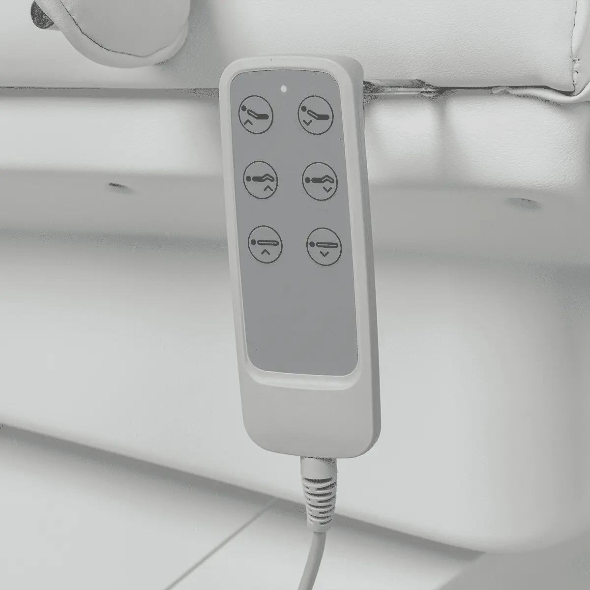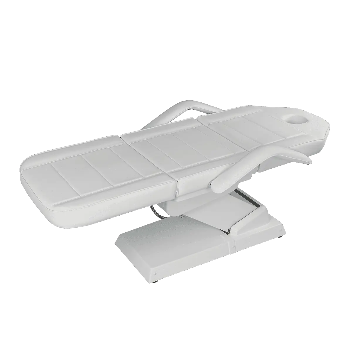 Комплектация: каркас с широким основанием на подпятниках, сиденье, спинка с вырезом для лица и съемным подголовником, мягкий элемент для ног, съемные подлокотники, электропривод (3 мотора).
