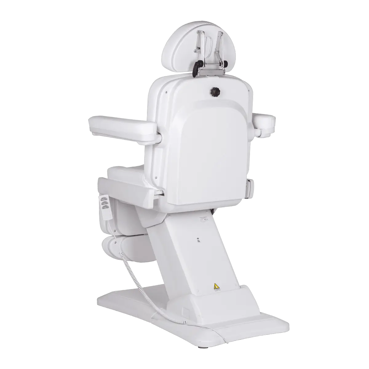 Комплектация: основание на подпятниках, каркас, мягкие элементы (сиденье, спинка и подушка под ноги, подголовник с отверстием для лица и подлокотники), электропривод 3 мотора, пульт управления.