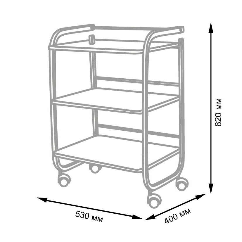 Купить косметологическую тележку МД-102А можно для косметологического или массажного кабинета, СПА-салона. Она оснащена тремя металлическими полками с удобными бортиками, препятствующими падению расположенных там инструментов, расходных материалов и различных приборов. Все полки имеют одинаковые размеры – 470х340 мм. При выборе косметологической тележки стоит учитывать расстояние между полками. В данной модели оно составляет 260 мм.