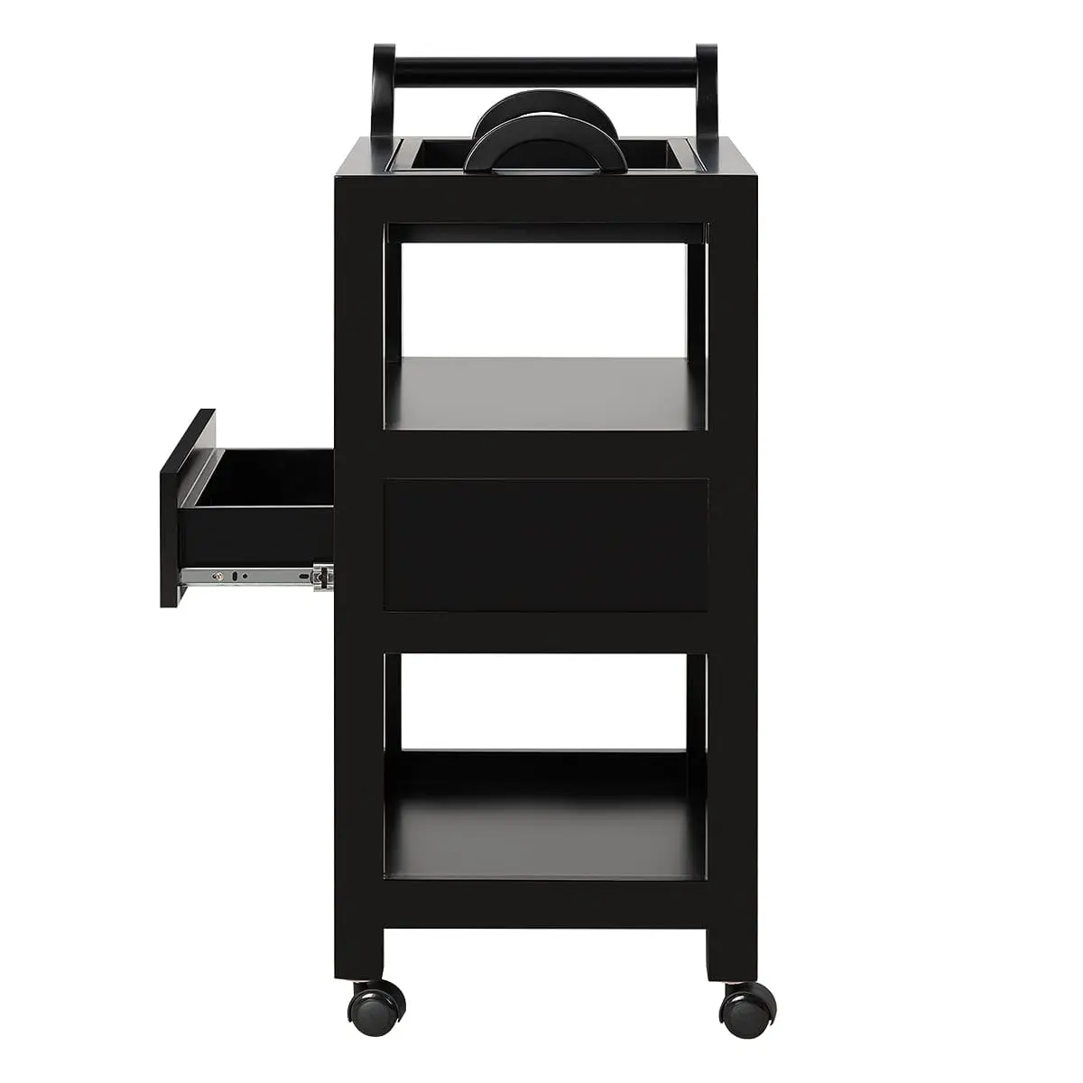 Верхняя полка оснащена съемным столиком с ручками, где можно хранить чаши и емкости, и при необходимости легко снять и почистить столик. Также на верхней полке находится отдельная удобная ручка, на которой можно разместить аксессуары, и с помощью которой можно легко переместить столик. Это делает его настоящей находкой для мастеров СПА-салонов. Его конструкция и функциональность словно созданы для проведения СПА-процедур. А посетители оценят стильный внешний вид.