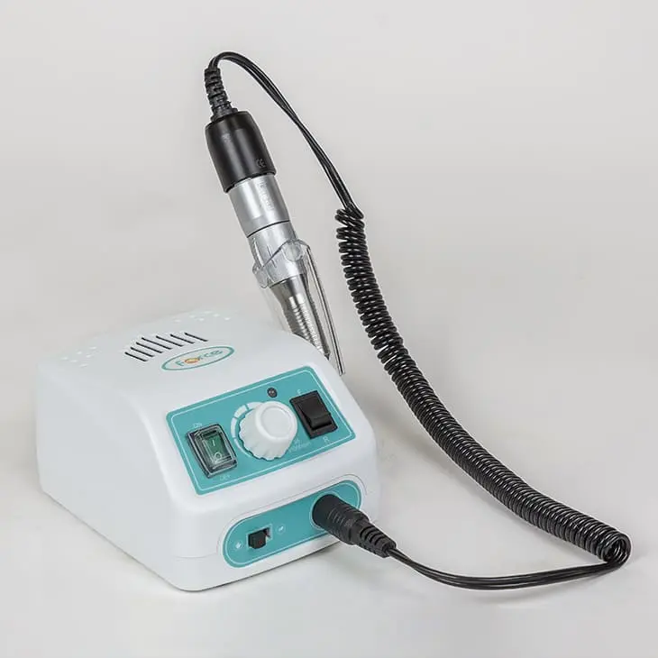 Маникюрный аппарат обладает мощностью в 60 Ватт и достигает 30000 оборотов в минуту. Во время работы ручка фрезера не нагревается благодаря системе охлаждения. Фреза не создает вибраций, что дает возможность сделать идеально ровную поверхность. Легкий вес наконечника и удобная форма предотвратят усталость рук мастера в процессе работы.