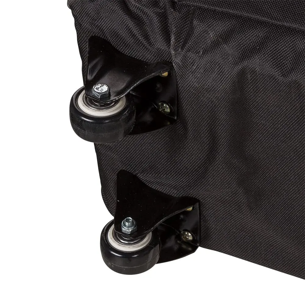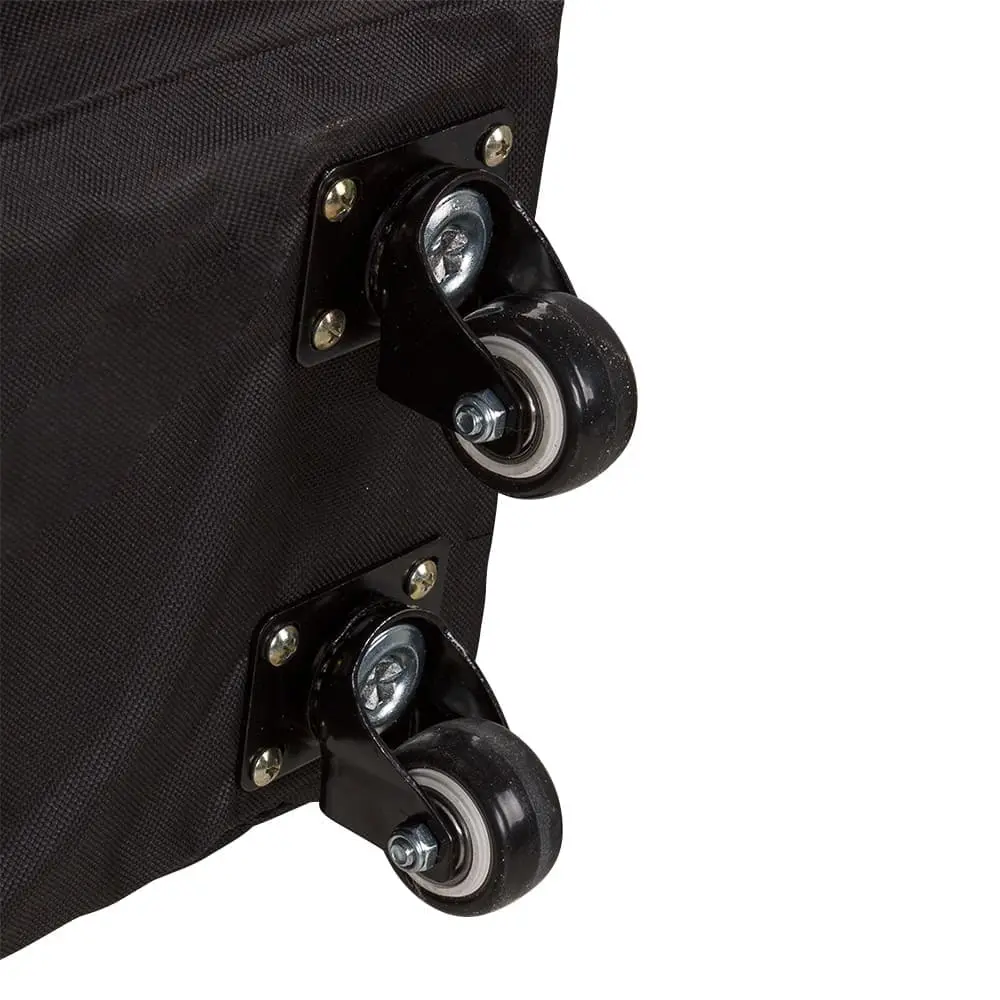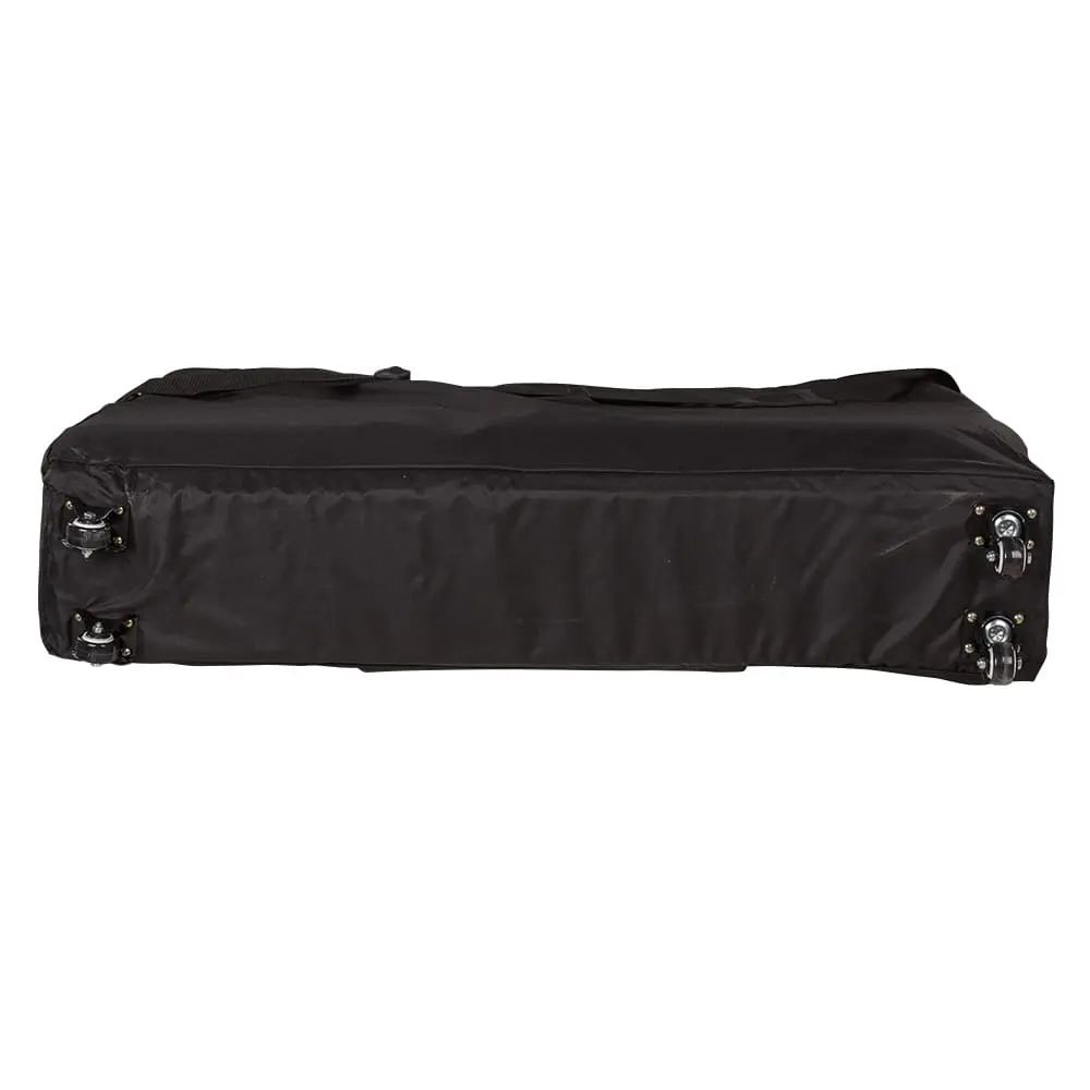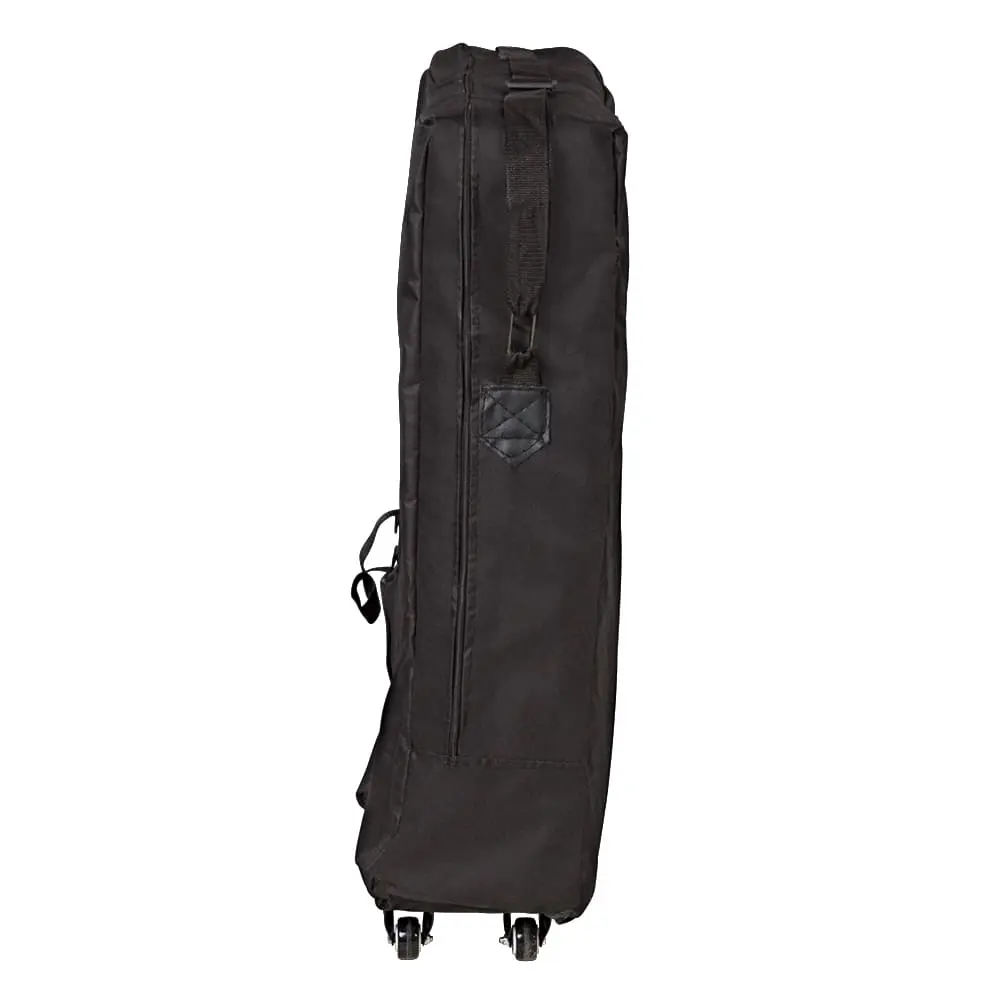 Вместительная сумка застегивается с двух сторон. Лямку можно регулировать по длине. Благодаря встроенным колесикам мастеру не придется нести тяжелый столик в руках. Практичное дополнение чехла – вместительный карман, в котором можно держать необходимые косметические средства.