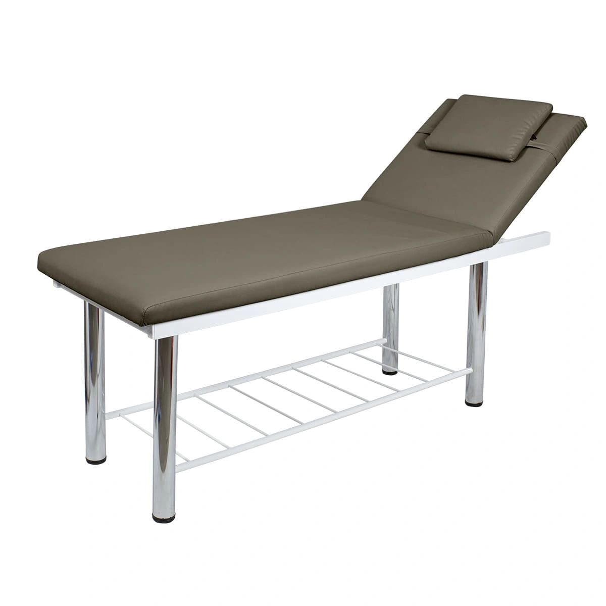 Стильная кушетка массажная МД-3277 выполнена из качественных материалов и обладает отличным функционалом. Для изготовления каркаса применяется прочный металл с антикоррозийным покрытием. Кушетка установлена на устойчивые хромированные ножки на подпятниках, которые соединены функциональной металлической решеткой. На ней мастер сможет расположить различные рабочие принадлежности, например, валик для массажа, полотенца, приборы и прочее.