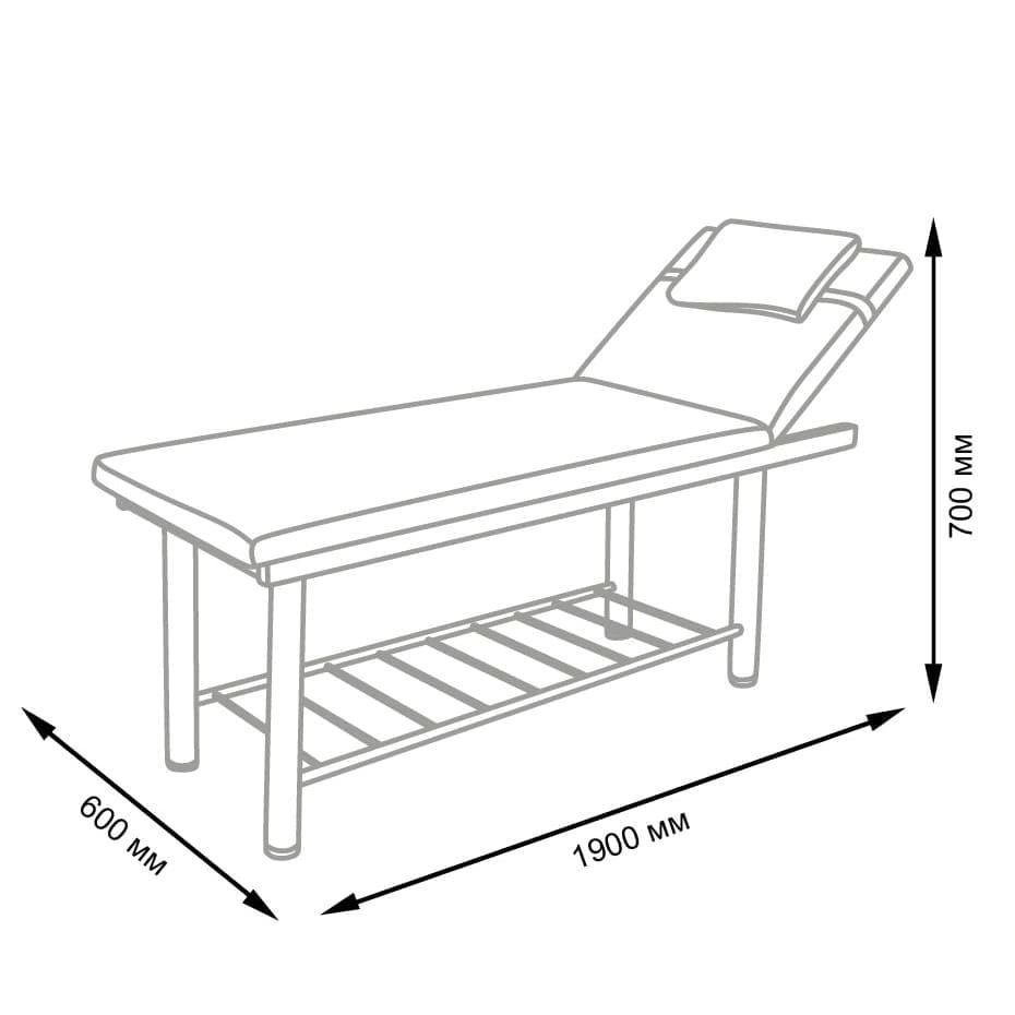 Комплектация: каркас из металла, ножки, мягкие детали (стол, подголовник с овальным вырезом, съемная подушка), усилитель каркаса в виде решетки.