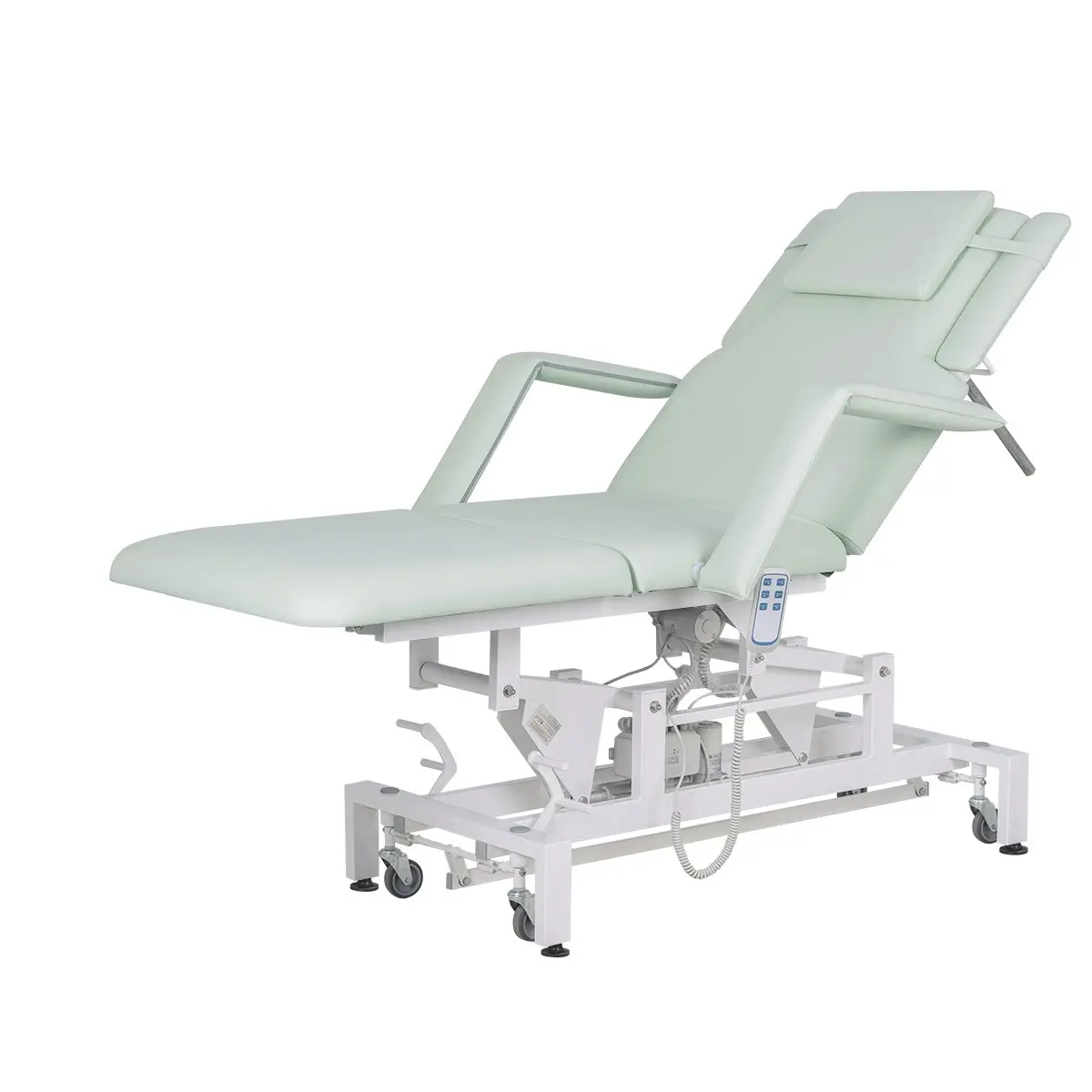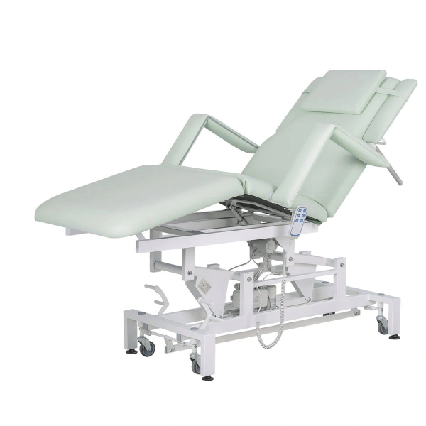 В данной модели установлено 3 мотора для подъема кушетки, регулировки спинки и наклона сиденья. Благодаря такой конструкции купить кушетку массажную МД-849 (Элегия-3А) на колесной базе можно для оказания как массажных, так и косметологических услуг. При помощи компактного и удобного пульта мастер сможет легко настраивать кушетку для конкретной процедуры. Для обшивки мягких деталей применяется современный обивочный материал – качественная экокожа. Кушетка массажная МД-849 (Элегия-3А) на колесной базе в магазине МЭДИСОН представлена в любом цвете под заказ.