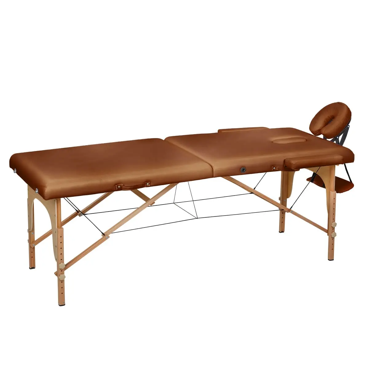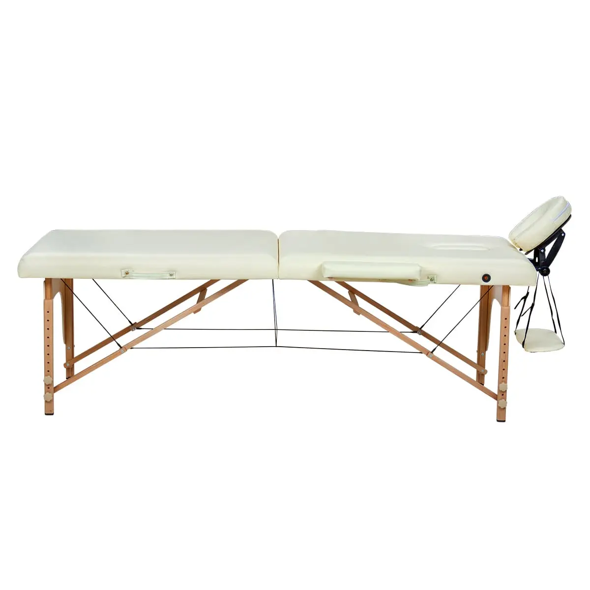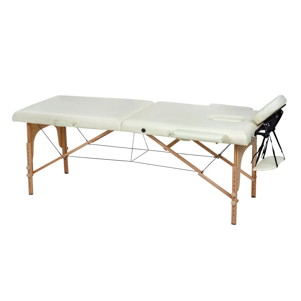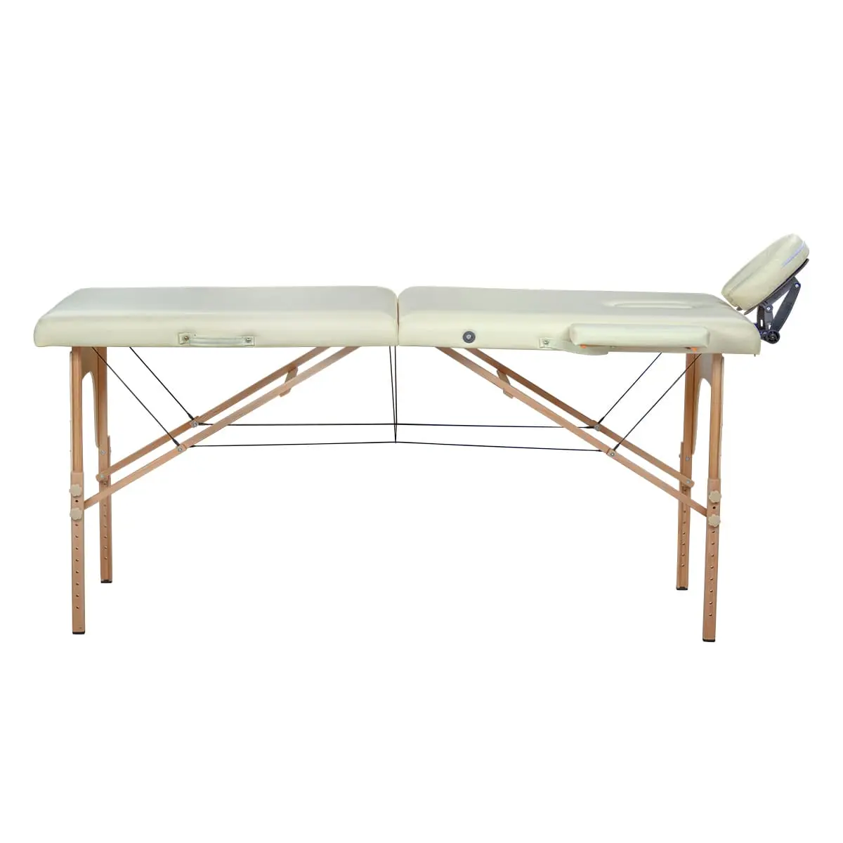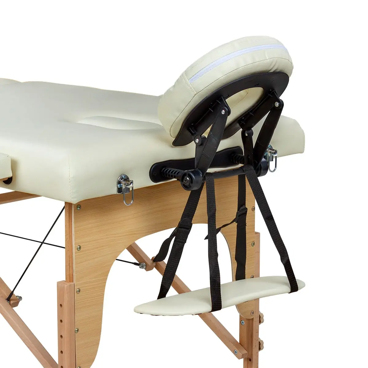 Высота массажного стола регулируется, что позволит мастеру подобрать оптимальное положение для проведения процедур. Съемный подголовник поможет увеличить длину кушетки. Для хранения и удобной транспортировки массажное оборудование легко складывается до размеров чемодана.