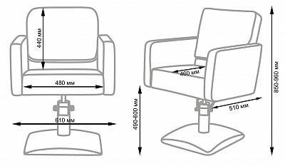 Комплектация кресла: кресло с подлокотниками, основание из хромированной стали (квадратная форма), гидравлика.