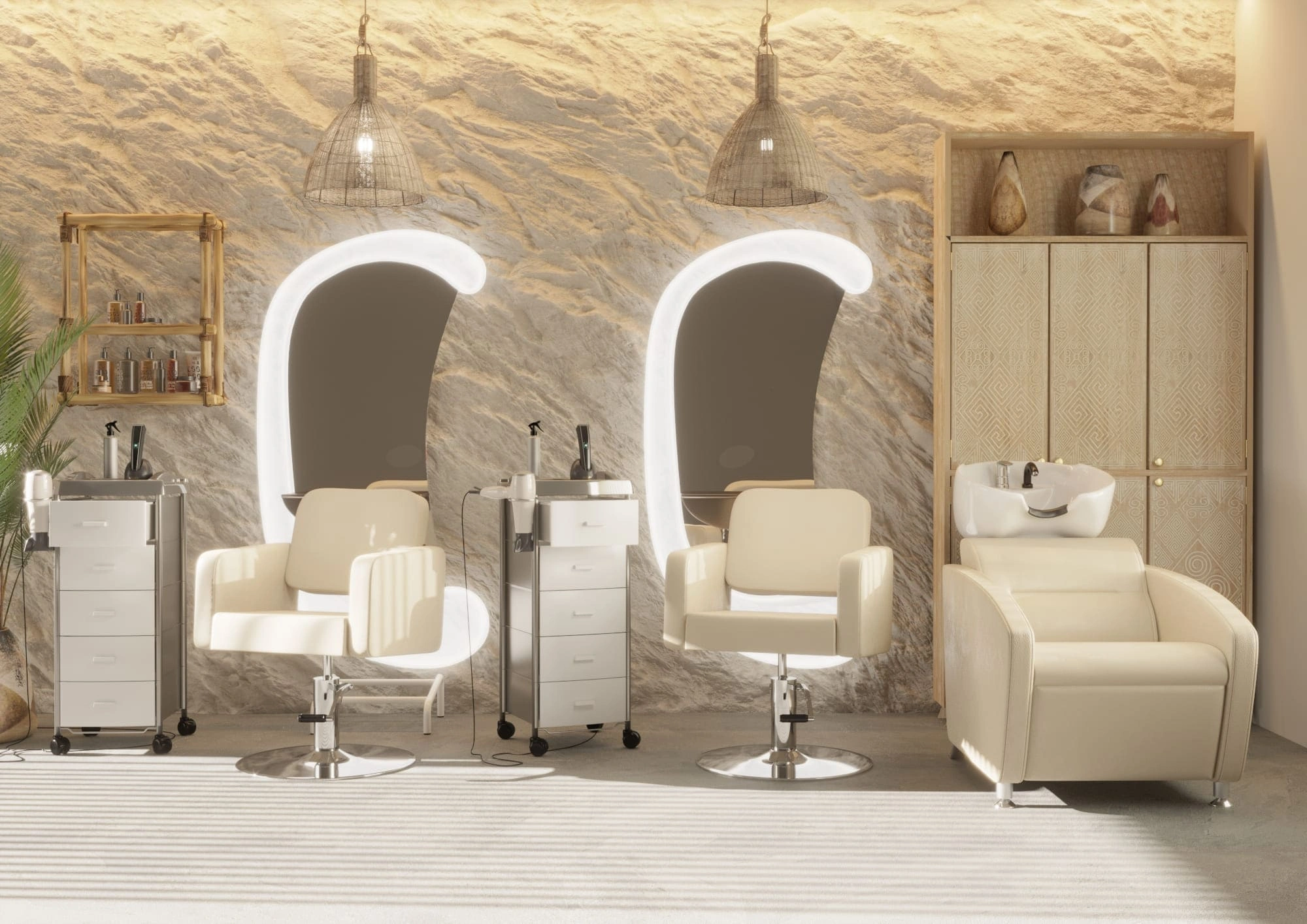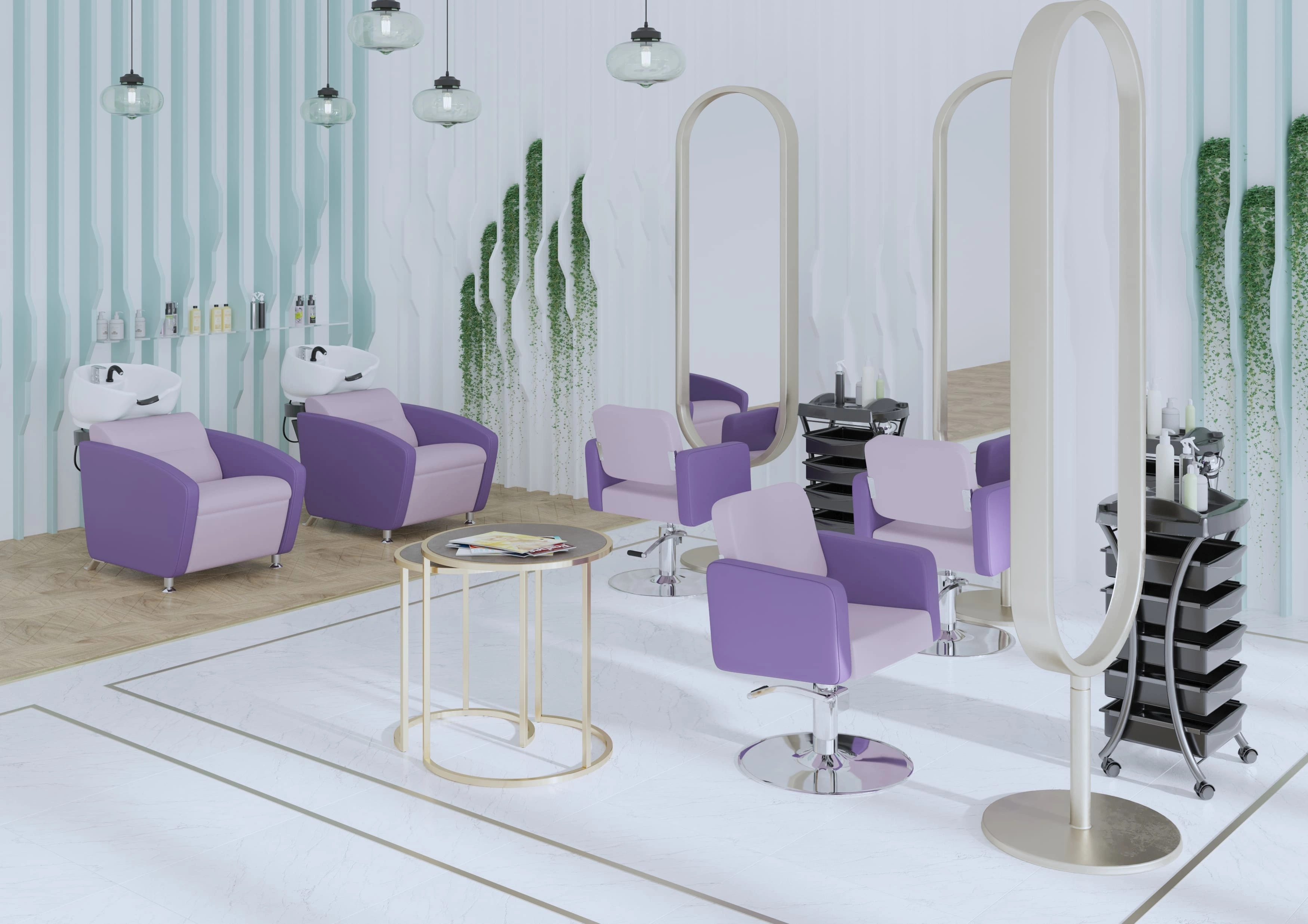 Удобное сидение с мягкой спинкой в сочетании с подлокотниками помогут обеспечить комфорт каждому клиенту. В качестве наполнителя применён плотный поролон, который не образует вмятин в течение длительного срока эксплуатации. Для обшивки использована прочная экокожа, устойчивая к разрывам, растягиванию и протиранию. Уход за поверхностью необычайно прост, потому что материал не впитывает влагу и грязь. Пыль с такой мебели можно удалить сухой текстильной салфеткой, а пятна от косметических продуктов стираются специальными моющими составами для кожи.