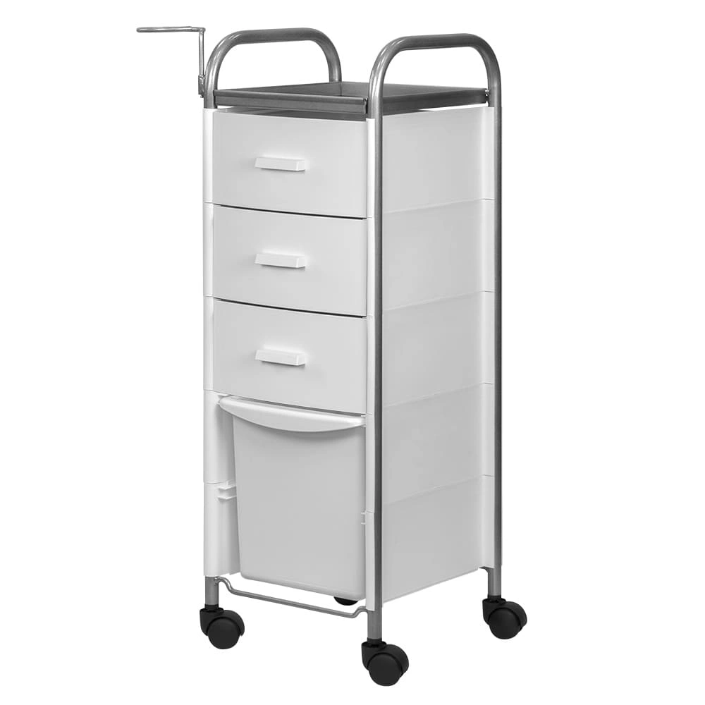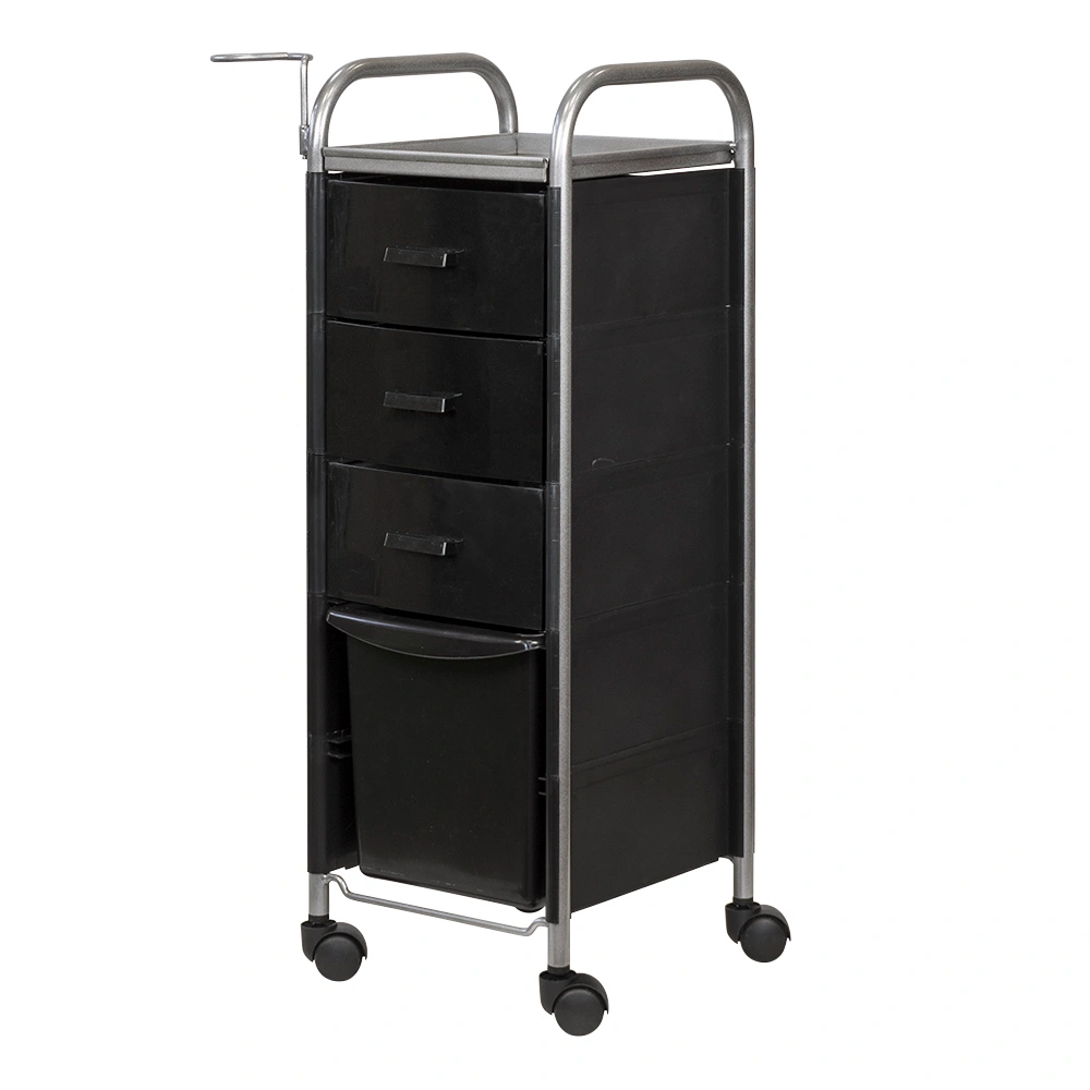 В компактной парикмахерской тележке достаточно места для приспособлений и косметики парикмахера. Верхняя полка предназначена для инструментов первой необходимости.