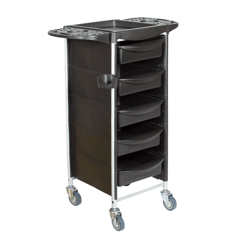Тележка парикмахерская Т-30 (черный цвет) укомплектована пятью вместительными ящичками из ударопрочного черного пластика. По бокам тележка закрыта декоративными пластиковыми панелями. Благодаря прочному металлическому каркасу конструкция выдерживает достаточно большие нагрузки. Объема ящиков полностью хватит для хранения всех необходимых для работы инструментов, расходных материалов и различных аксессуаров. В нашем магазине Вы можете купить тележку парикмахерскую Т-30 черного цвета по выгодной цене.
