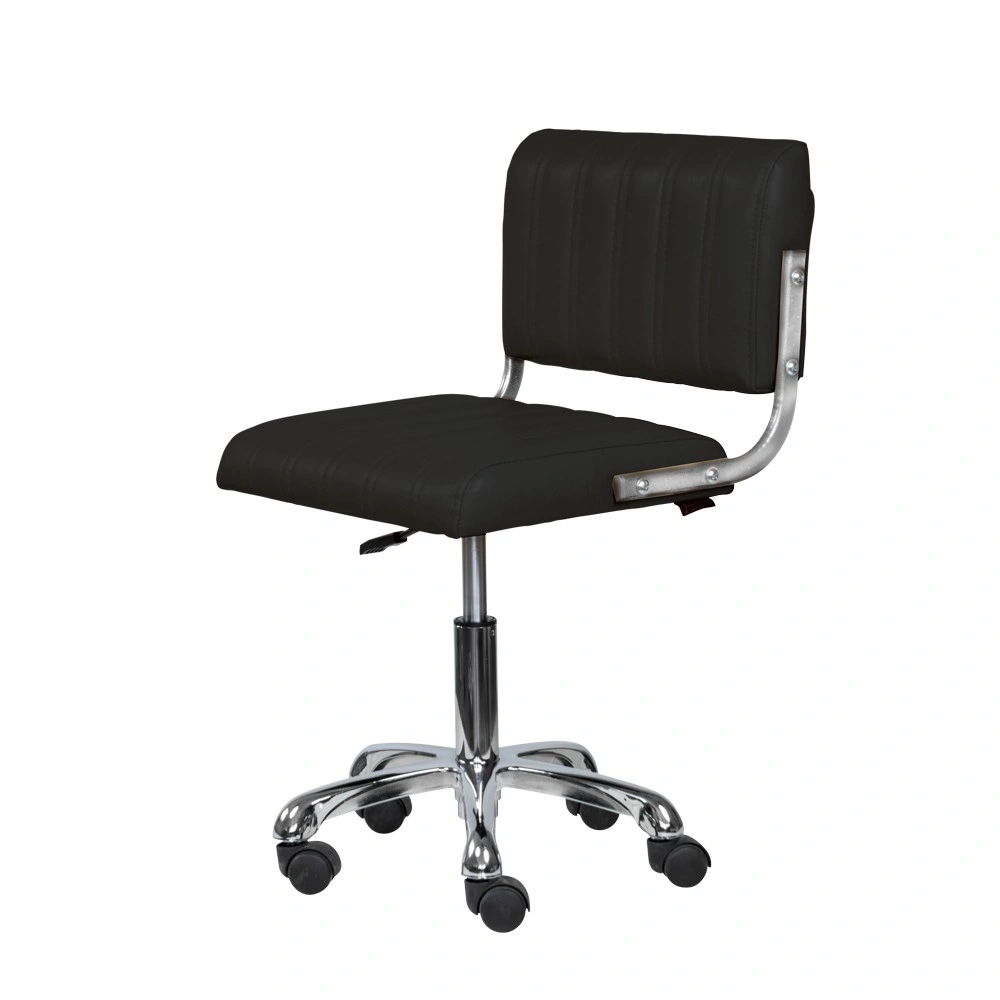 Обивка стула мастера – экокожа. Материал прочный, гладкий и приятный на ощупь. За счет своей структуры экокожа устойчива к истиранию и царапинам. Благодаря широкому выбору цветовых решений можно подобрать стул мастера для любого интерьера салона красоты. В качестве наполнителя использован эластичный поролон, не оставляющий вмятин на поверхности после использования.