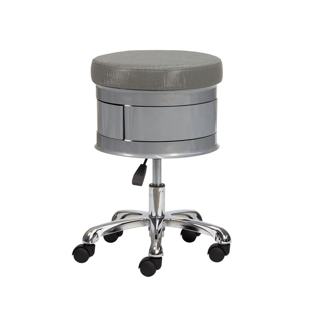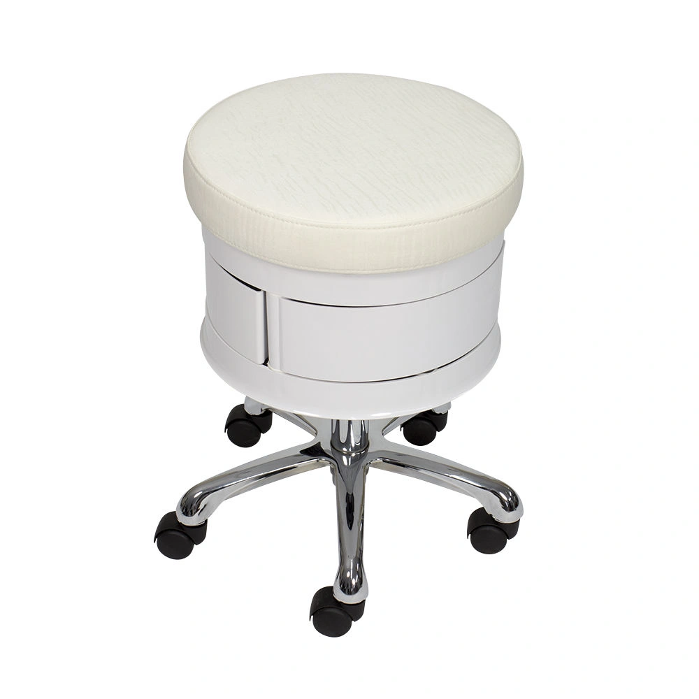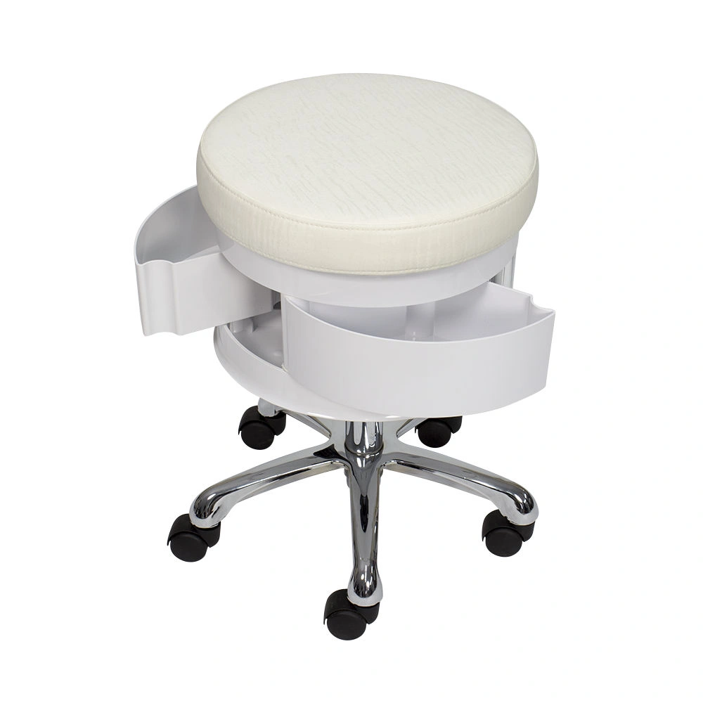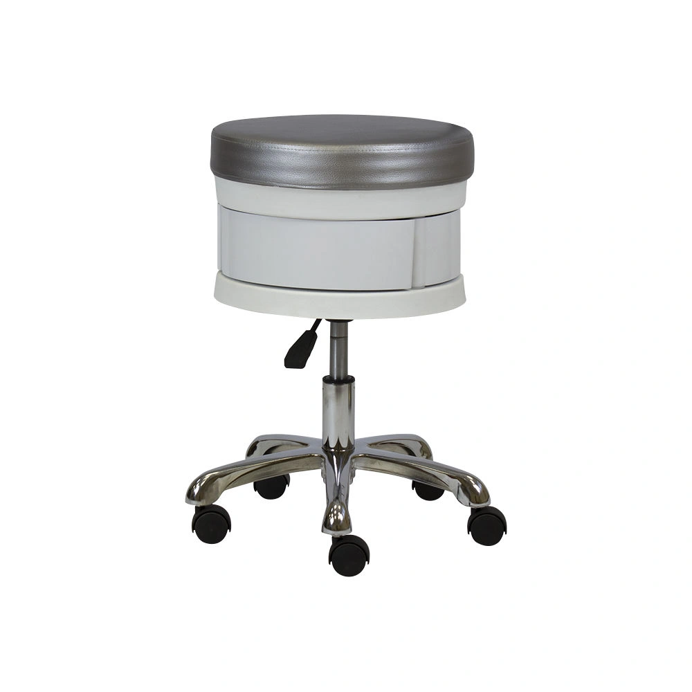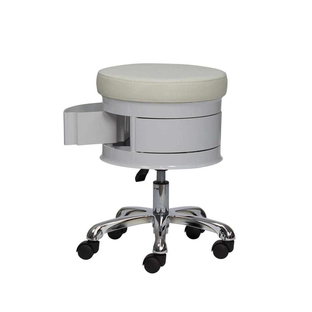 Для комфортной посадки предусмотрено мягкое сидение. В нижней части есть практичные ящики, чтобы держать необходимый инструмент во время проведения процедур. Для удобного перемещения стул укомплектован поворотными колесиками. Теперь не придется лишний раз вставать и передвигать мебель вручную. С помощью пневматического механизма регулируется высота стула, что позволит подобрать удобное положение.