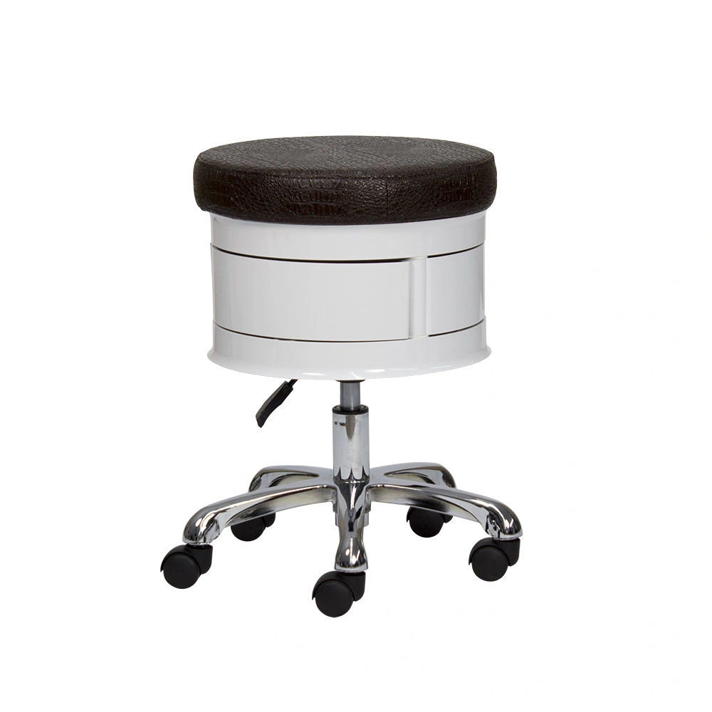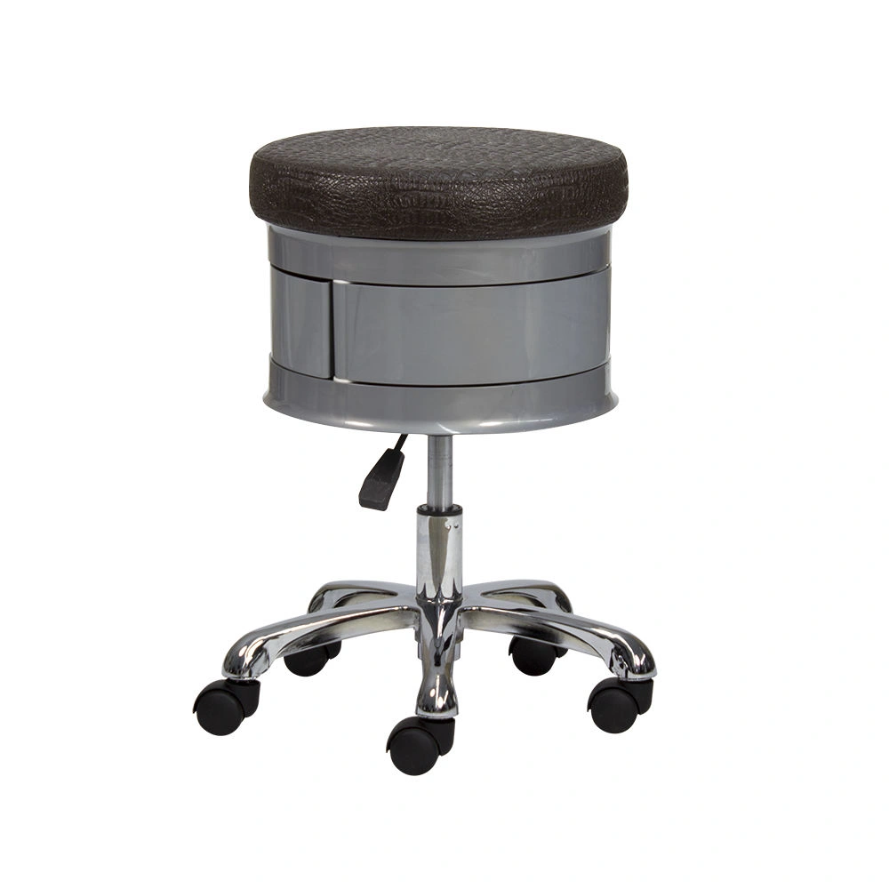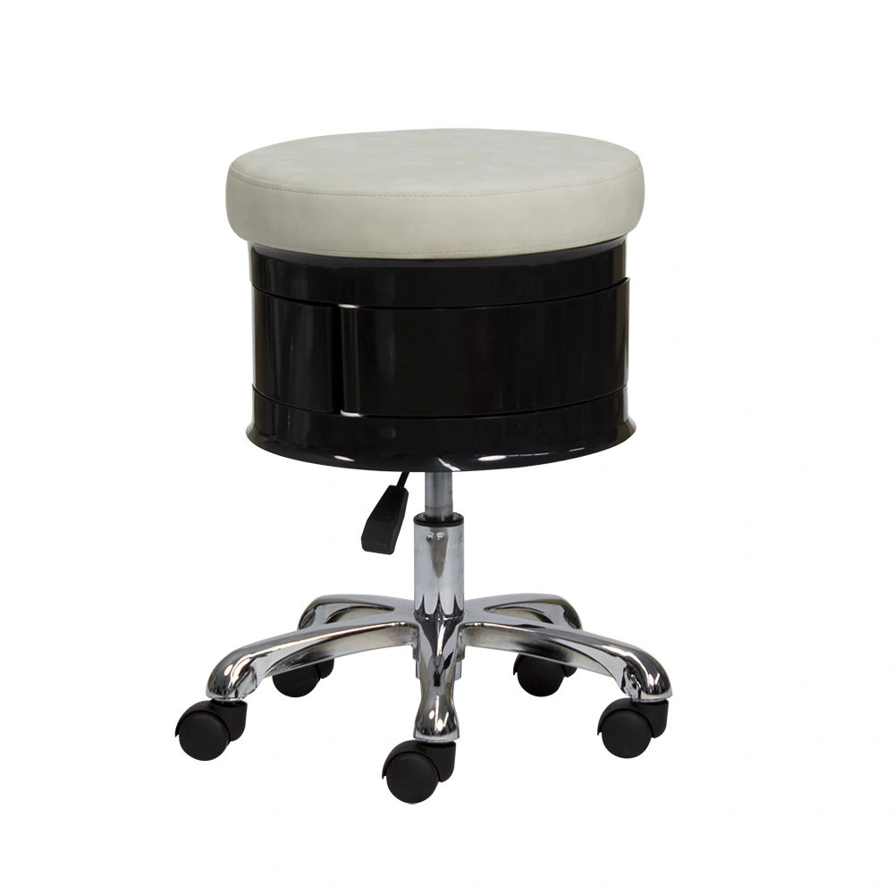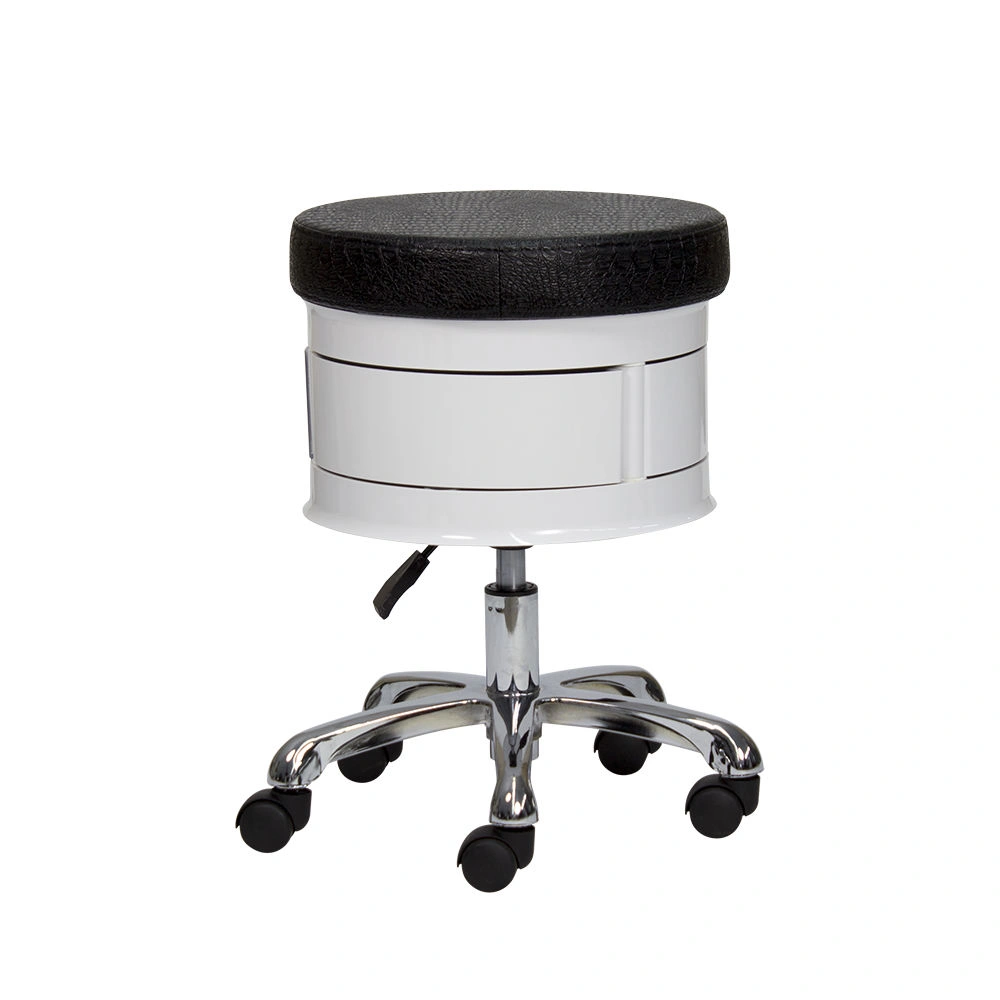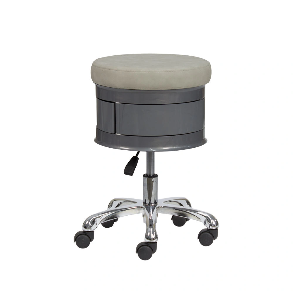 Для комфортной посадки предусмотрено мягкое сидение. В нижней части есть практичные ящики, чтобы держать необходимый инструмент во время проведения процедур. Для удобного перемещения стул укомплектован поворотными колесиками. Теперь не придется лишний раз вставать и передвигать мебель вручную. С помощью пневматического механизма регулируется высота стула, что позволит подобрать удобное положение.