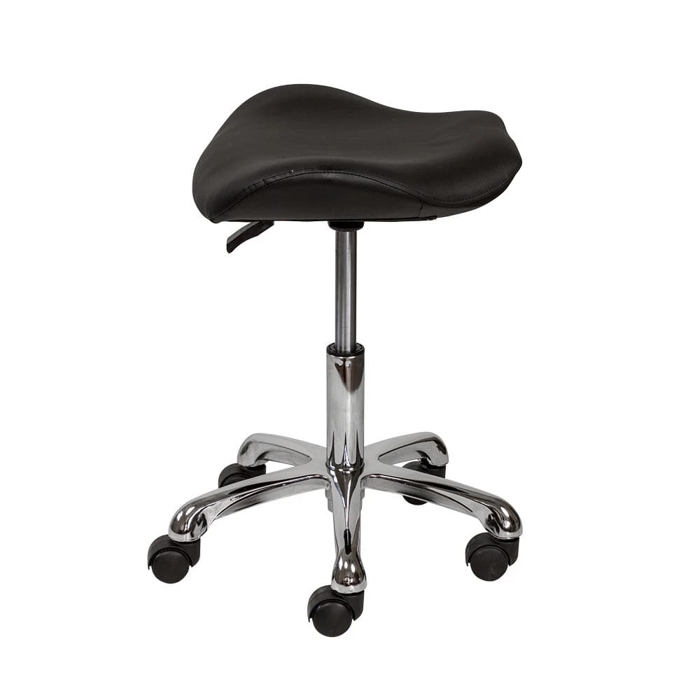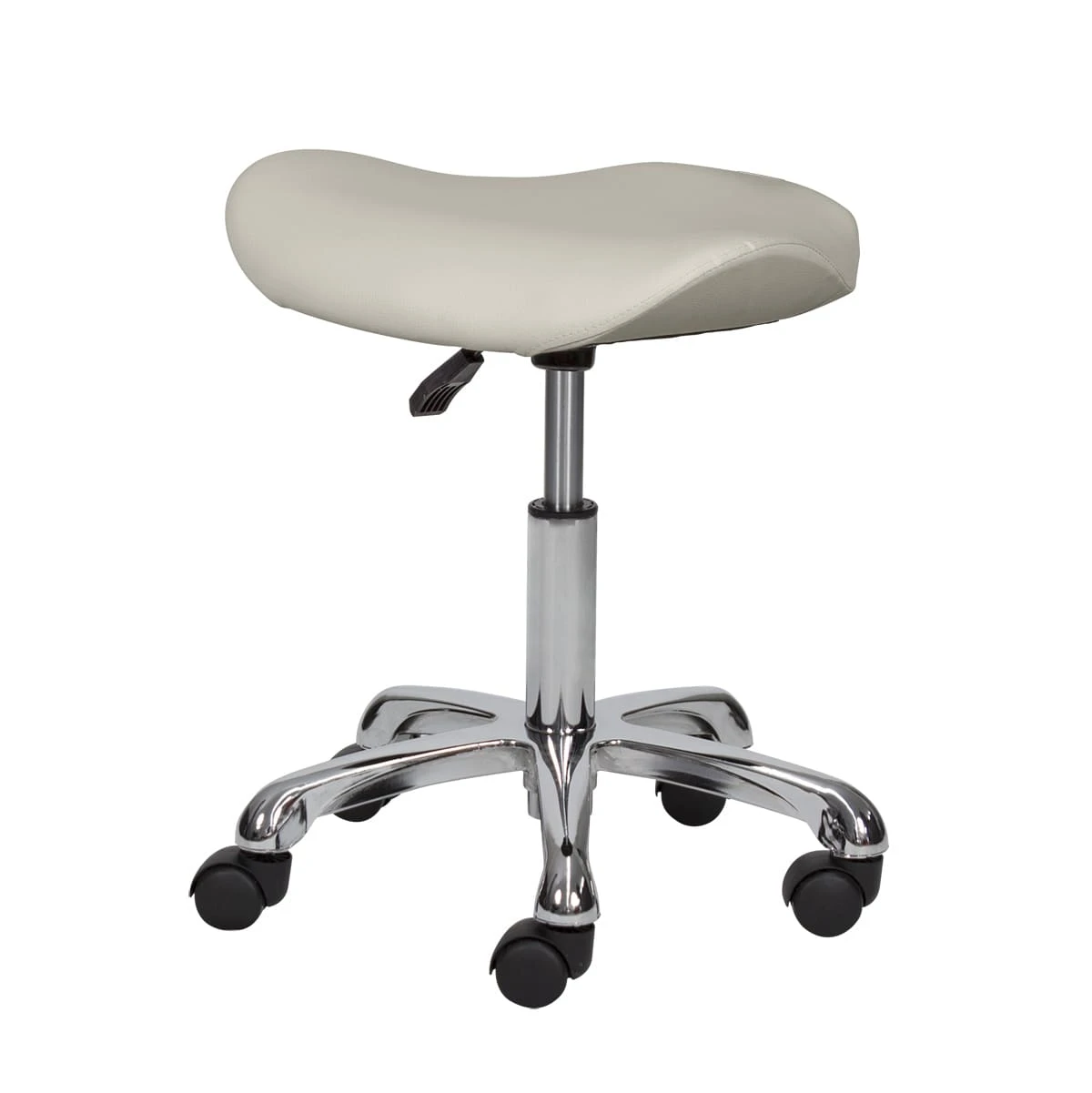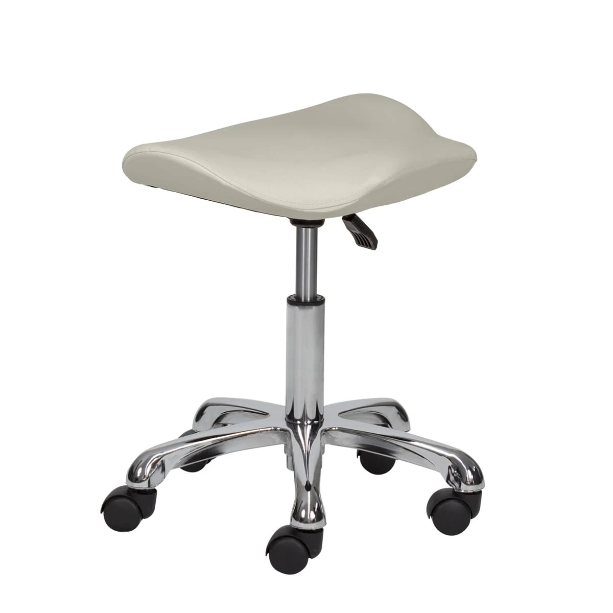 Сидение в форме седла обеспечивает правильное расположение позвоночника, что предотвратит боли в спине при длительной работе сидя. Для быстрого перемещения по рабочей площади стул оснащен вращающимися колесиками. Каждый специалист сможет подобрать для себя высоту сидения за счет пневматического механизма.