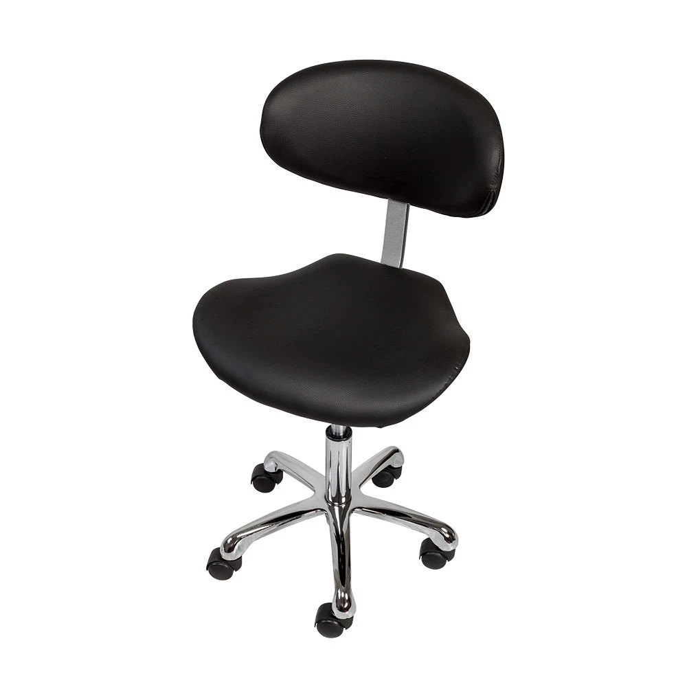 Благодаря сидению в форме седла уменьшается нагрузка на позвоночник и межпозвоночные диски, а также отсутствует давление на заднюю поверхность бедер. Удобная спинка отвечает за поддержку правильной осанки. С таким стулом для мастера значительно снимется напряжение в спине и появится возможность отдохнуть во время напряженного рабочего дня. Благодаря маневренным колесам стул можно перемещать в любую точку салона, не вставая с него. Надежный пневматический подъемник поможет выбрать оптимальную высоту сидения для комфортной работы.