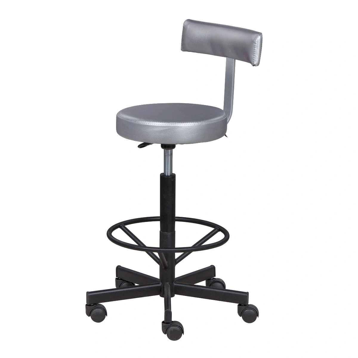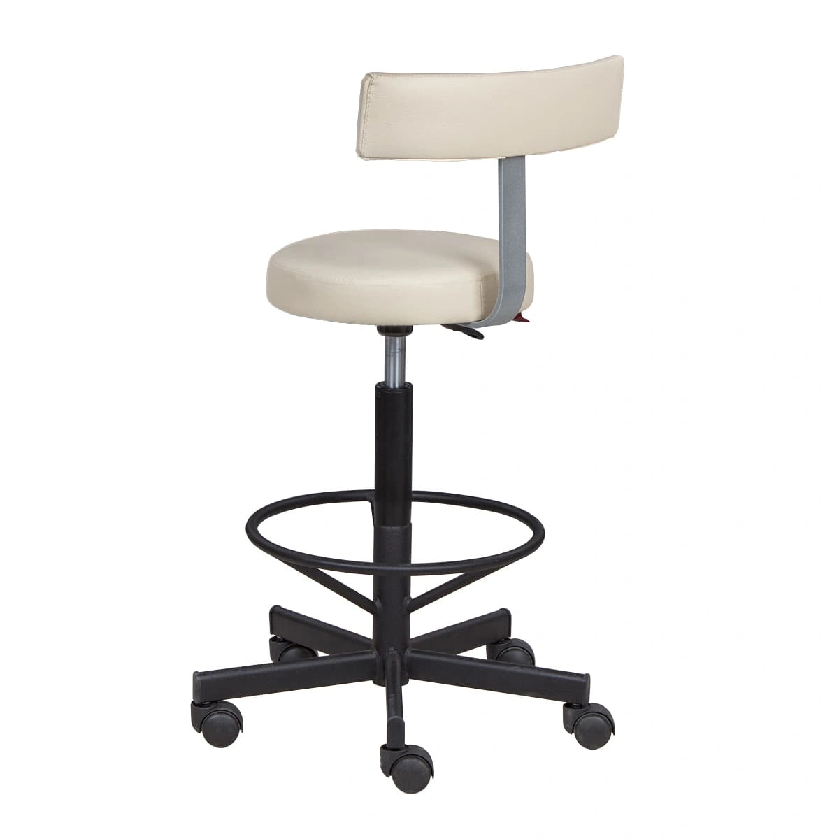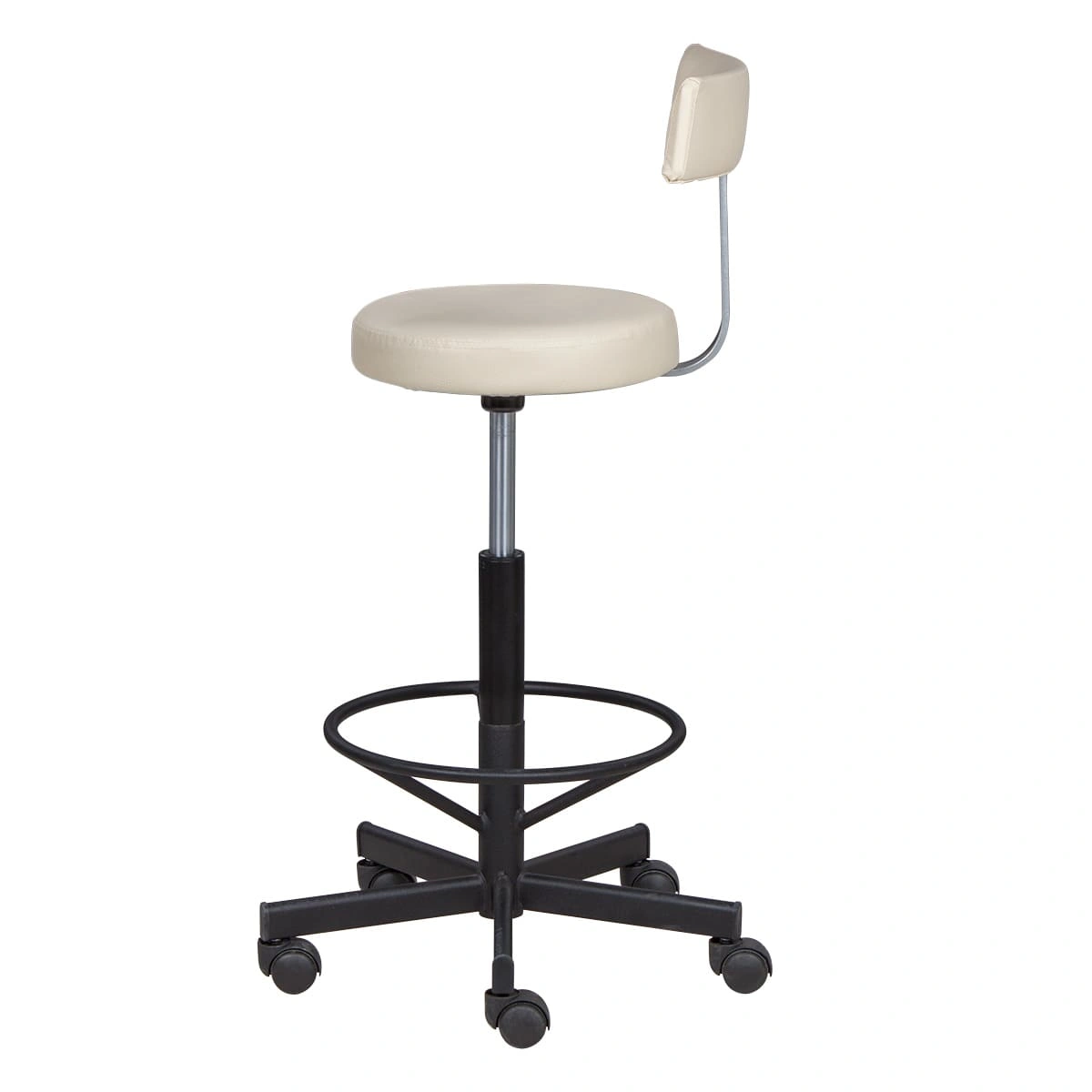 Стул с мягким сиденьем в виде таблетки позволит мастеру занять удобную позу во время проведения процедур. Спинка изогнутой формы отвечает за поддержку правильной осанки.