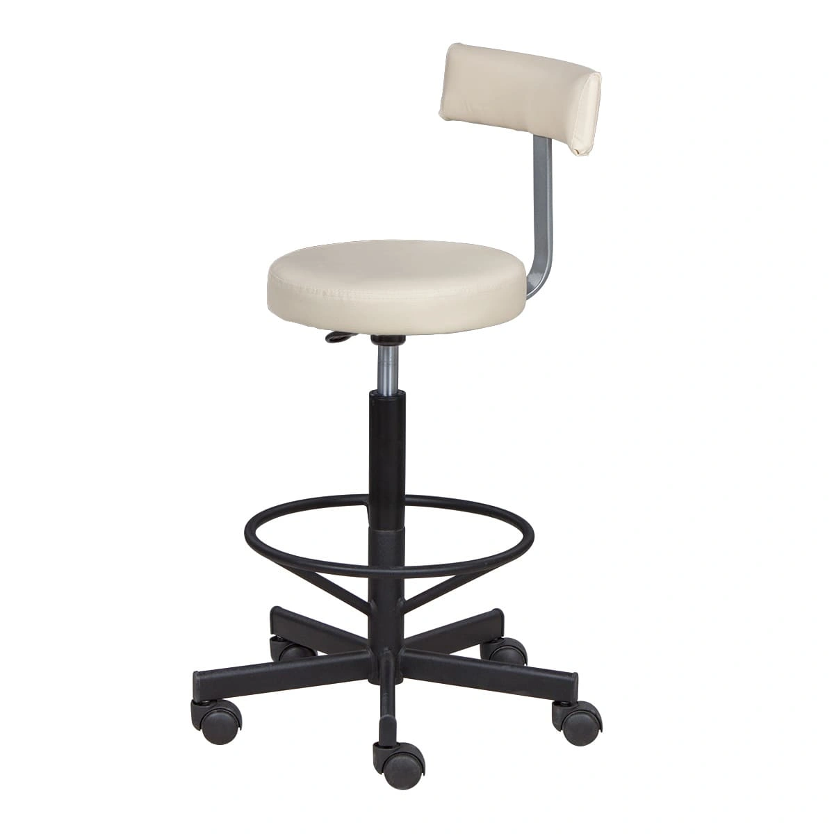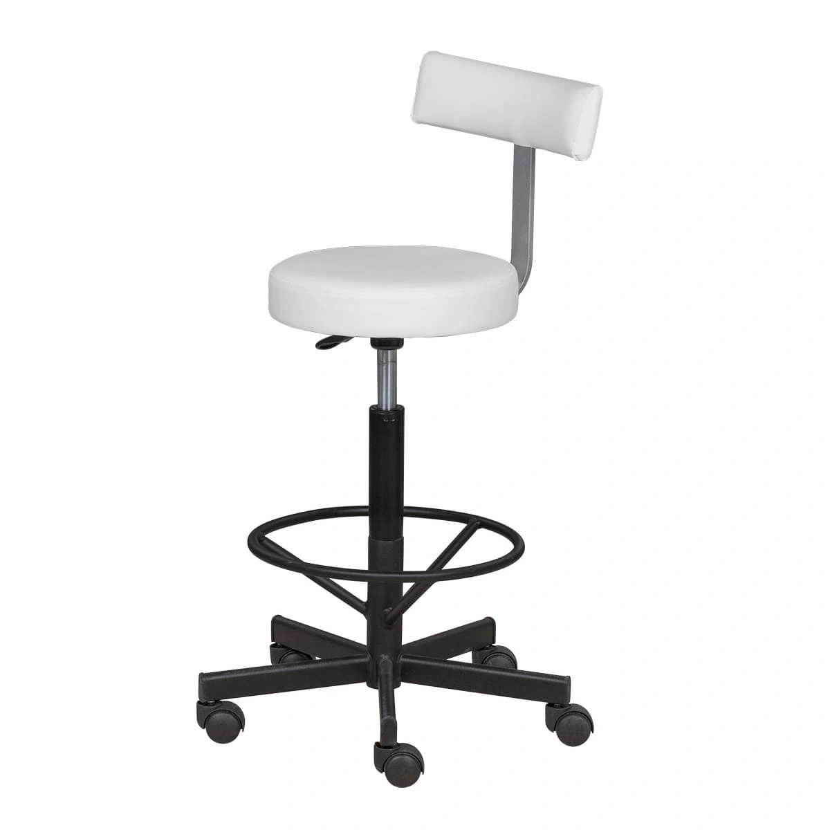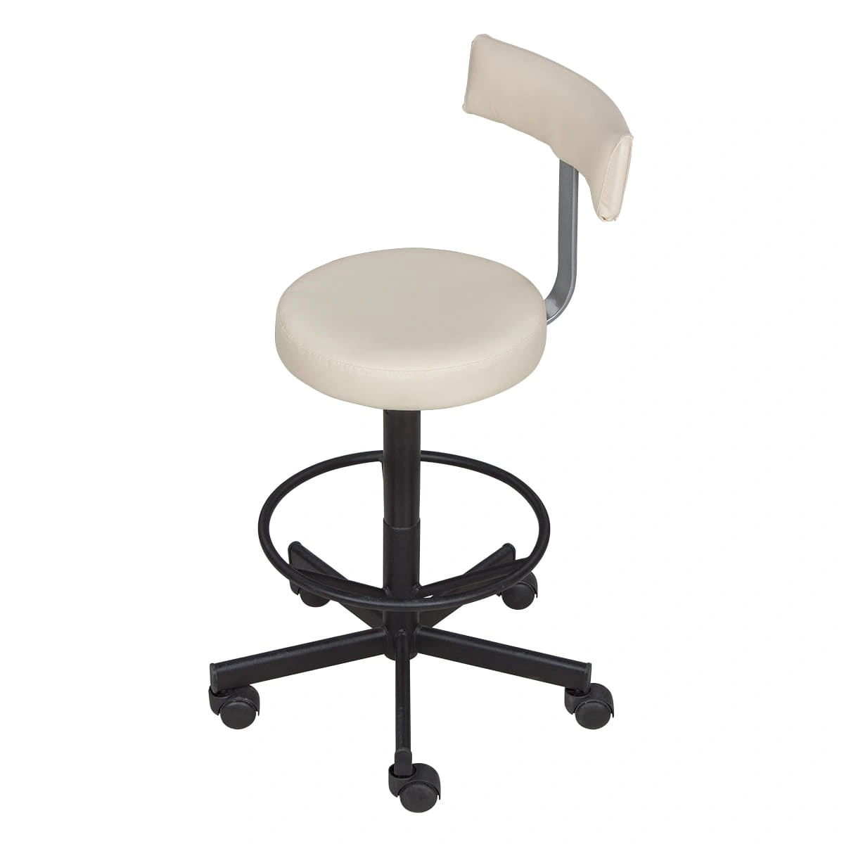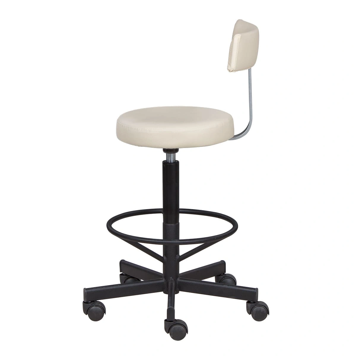 Стул с мягким сиденьем в виде таблетки позволит мастеру занять удобную позу во время проведения процедур. Спинка изогнутой формы отвечает за поддержку правильной осанки.