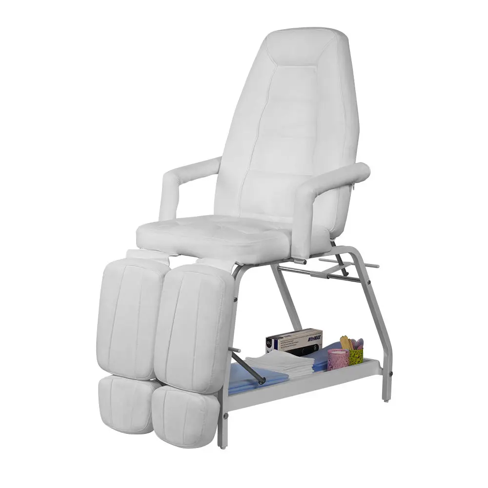 Педикюрное кресло СП Люкс относится к серии доступного профессионального оборудования по выгодной цене. Оно имеет стильный дизайн и обеспечивает необходимый уровень комфорта клиентам и мастерам в процессе выполнения педикюра и других косметологических процедур. Оборудование укомплектовано надежным устойчивым каркасом из металла, покрытого белой порошковой краской для защиты от коррозии. Для обивки мягких элементов наша компания использует экологически чистый и долговечный материал – экокожу. Она легко поддается чистке и не требует специального ухода.