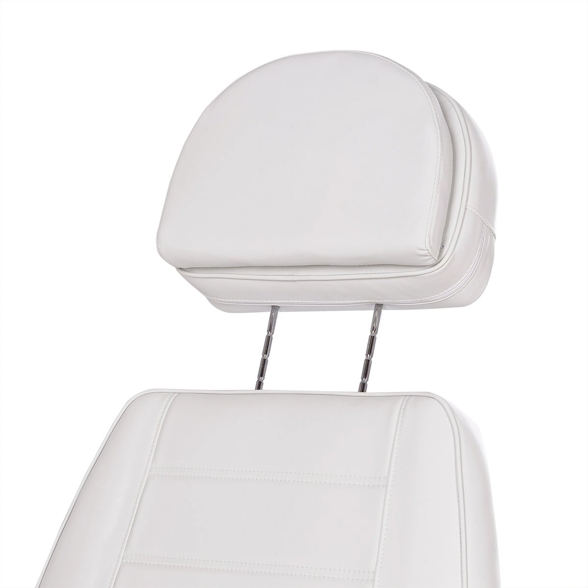Кресло имеет устойчивое широкое основание, конструкция полностью раскладывается в горизонтальное положение, имеются выдвижной подголовник с отверстием для лица, которое при необходимости можно закрыть мягкой подушкой и съёмные подлокотники со стильными деревянными вставками. Модель можно использовать для различных процедур: педикюр, наращивание ресниц, косметология, оформление бровей и т.д.