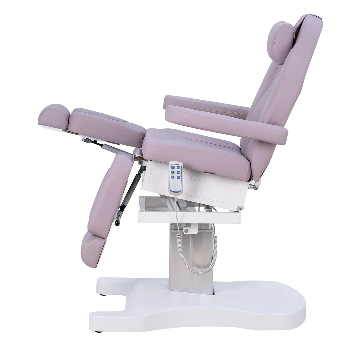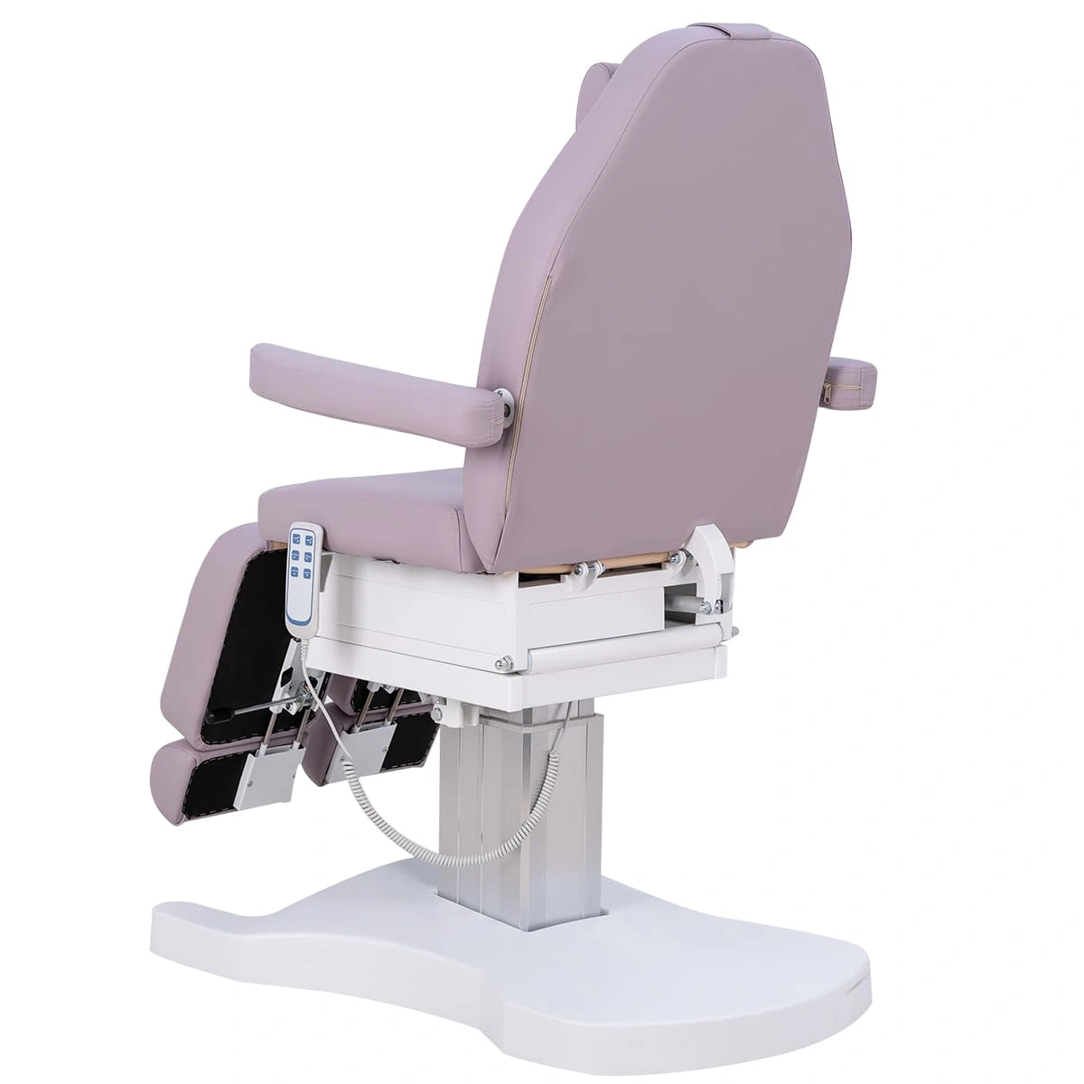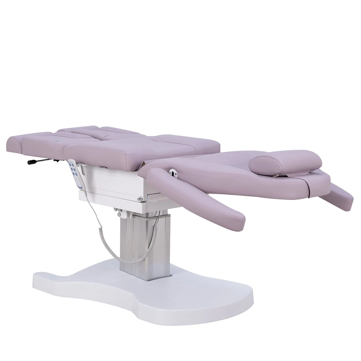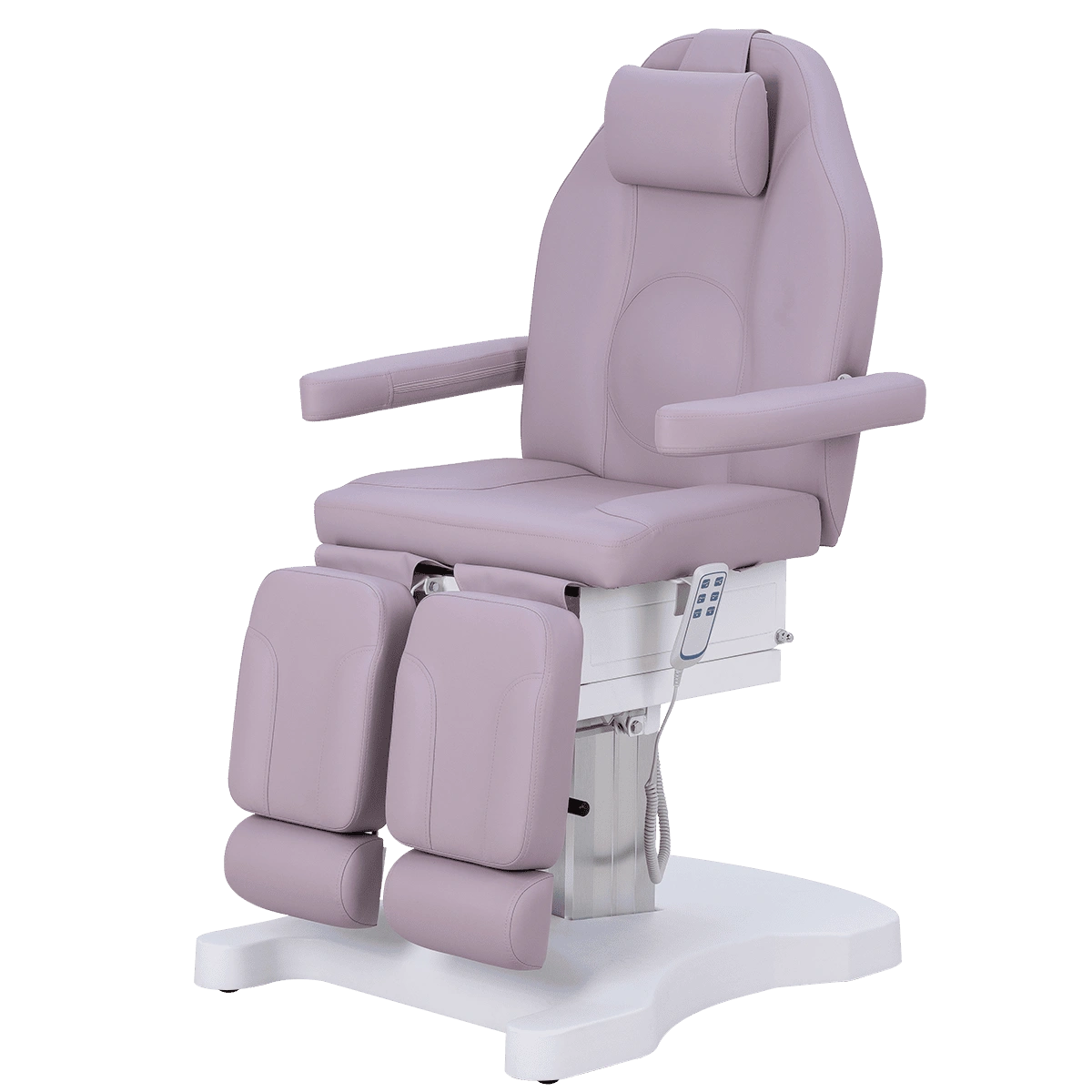 Функционал кресла Оникс-04 на колонне, 3 мотора дополняет электропривод с тремя моторами для регулирования высоты, положения спинки и наклона сиденья. Высота ножек регулируется пневматикой. Все механические детали аккуратно спрятаны в стильной серебристой колонне. Мягкие элементы под стопы легким движением выдвигаются на необходимую длину. Наличие различных регулировок позволяет мастеру подобрать наиболее удобное положение кресла.