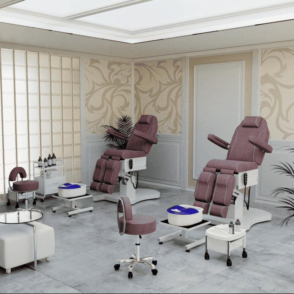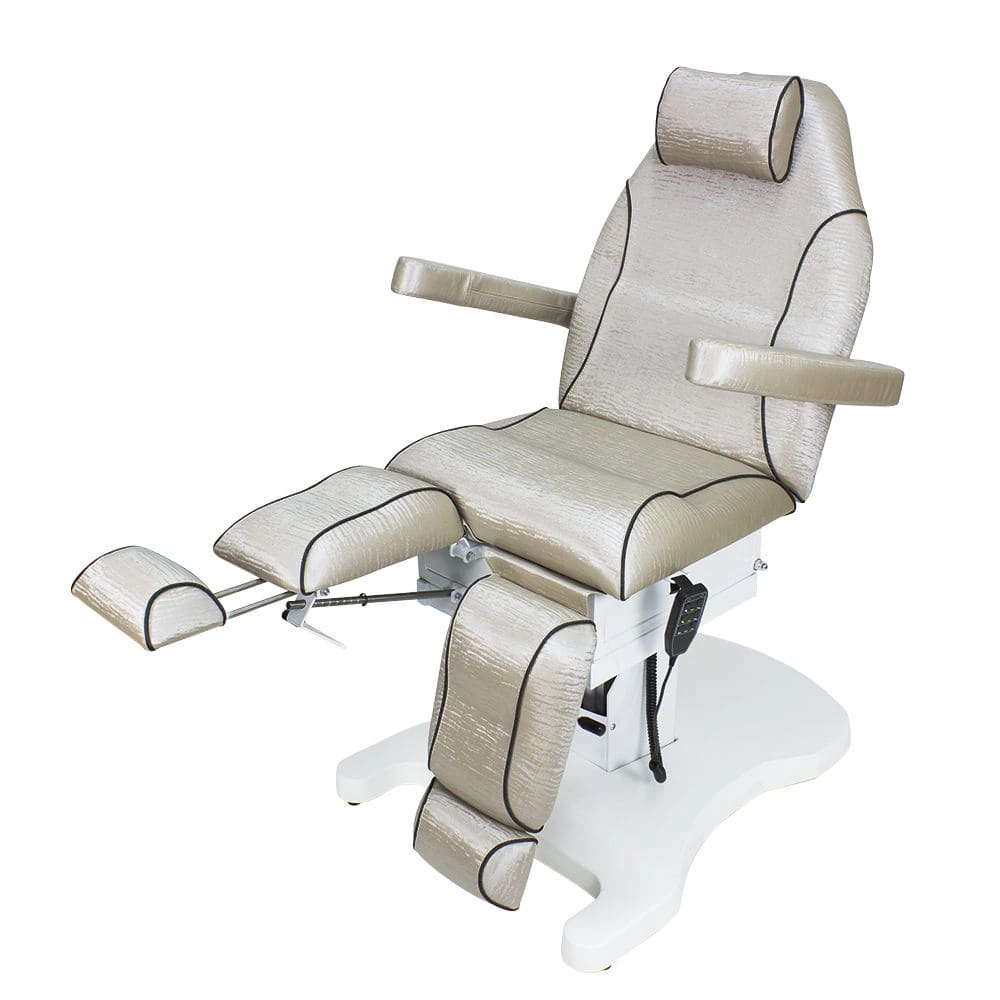 Педикюрное кресло Шарм-03 (Элегия-3В) (3 мотора) гармонично сочетает в себе инновационные технологии, современный дизайн и хороший функционал. В его комплектацию входит три мотора электрического привода, управление которыми осуществляется при помощи удобного, компактного пульта. Благодаря продуманной конструкции металлического каркаса и широкому основанию на подпятниках кресло сохраняет свою устойчивость под воздействием рабочих нагрузок в любом положении, предусмотренном регулировками. Пластиковая накладка на основании интересной формы подчеркивает дизайнерское решение.