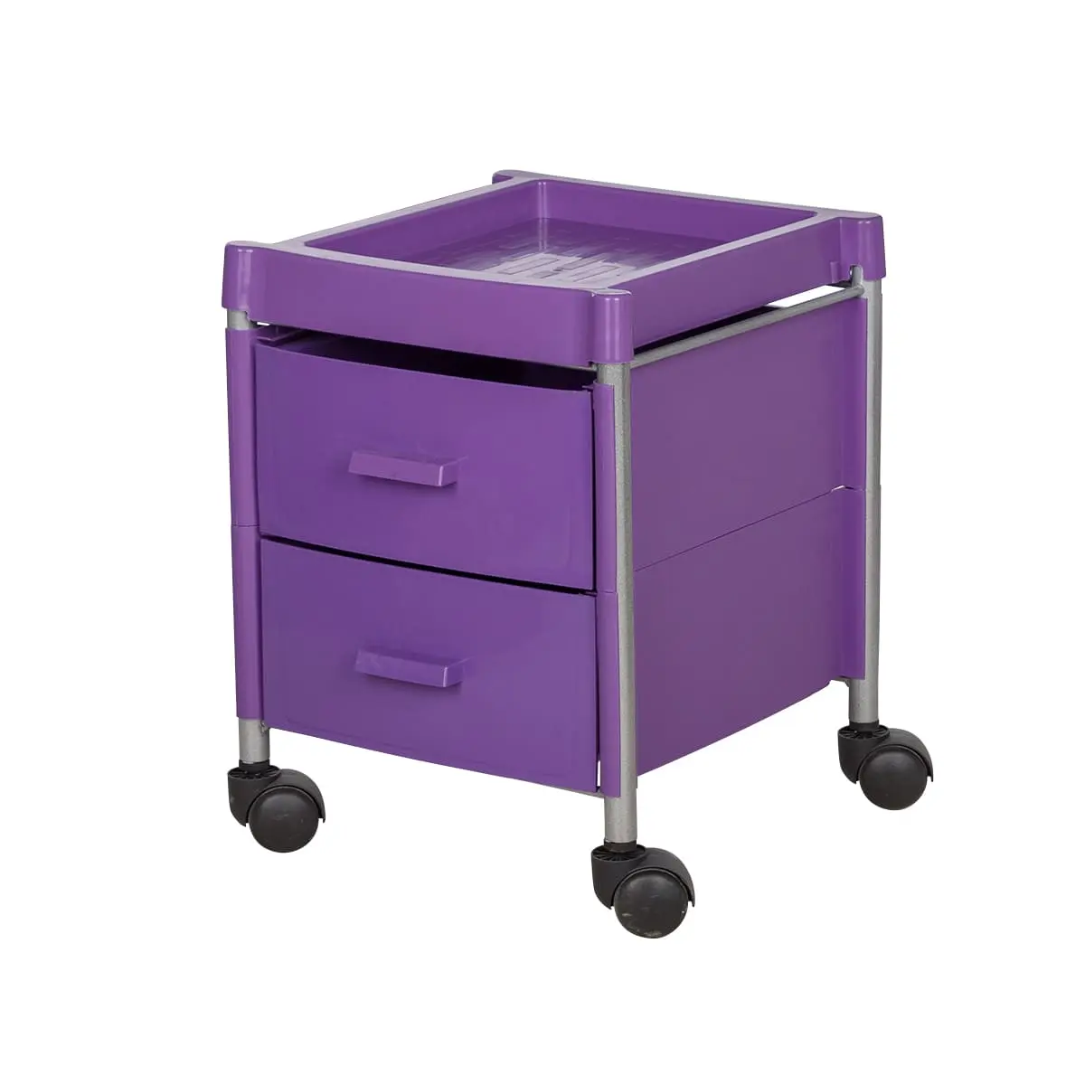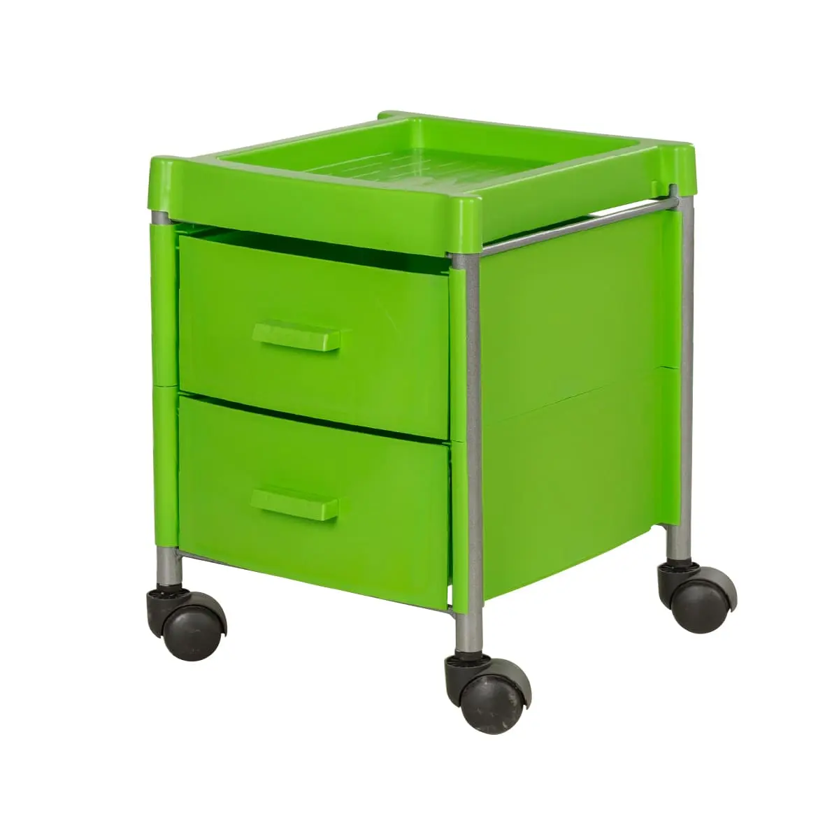 Тележка укомплектована двумя вместительными ящиками. Для инструментов, используемых во время рабочего процесса, на тележке предусмотрена крышка. Для быстрого и бесшумного перемещения, тележка для педикюра оснащена четырьмя поворотными колесами. Благодаря компактным размерам тележка может быть использована даже в небольшом кабинете.