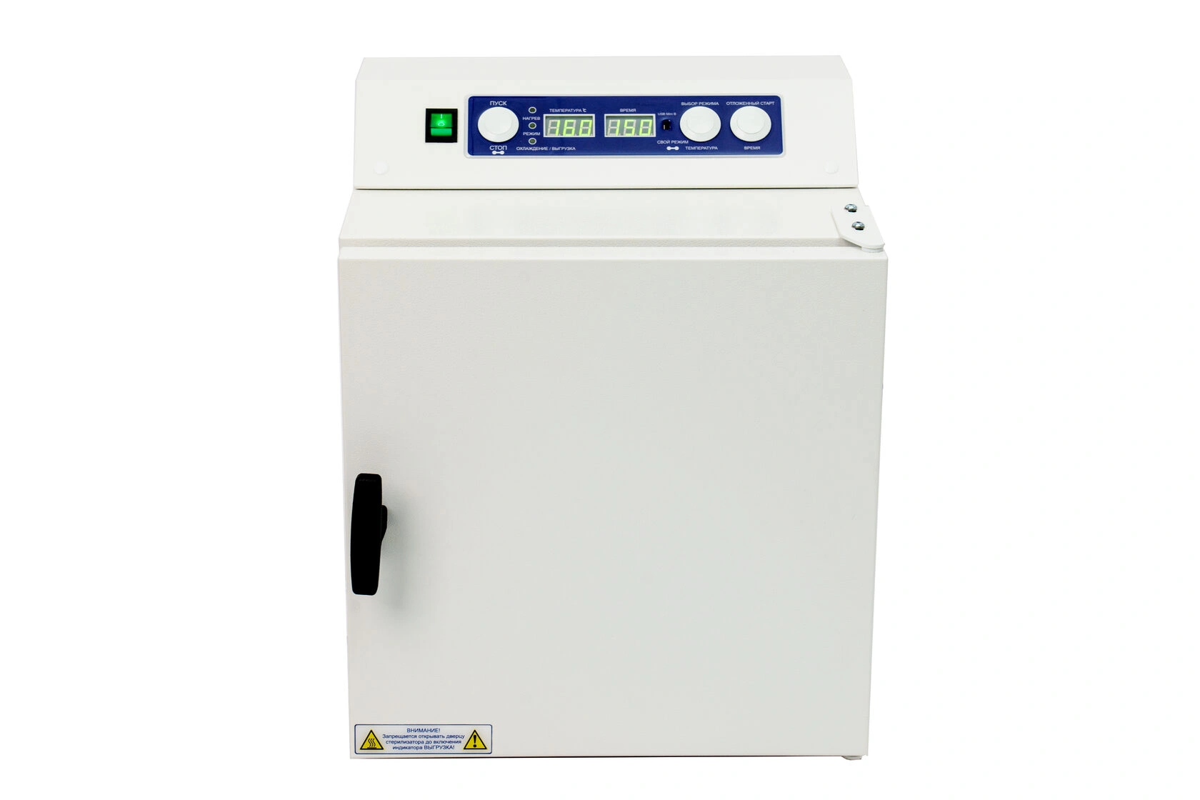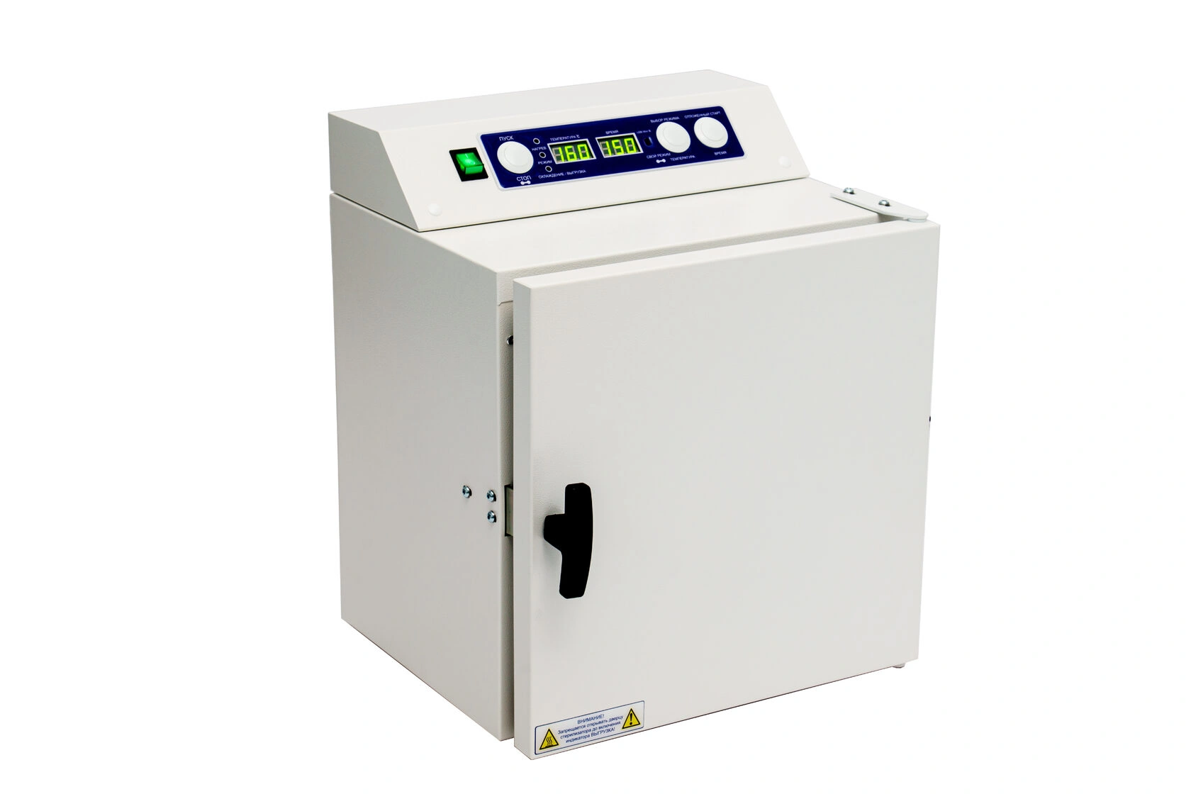 Стерилизатор "Ферропласт" при загруженной стерилизационной камере должен обеспечивать автоматическую поддержку температурных режимов в диапазоне от +85°С до +180°С и времени стерилизационной и дезинфекционной выдержки, а также пользовательского программируемого режима +50°С до +200°С, интервалом от 1 до 999 минут.
