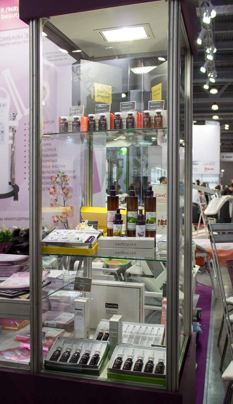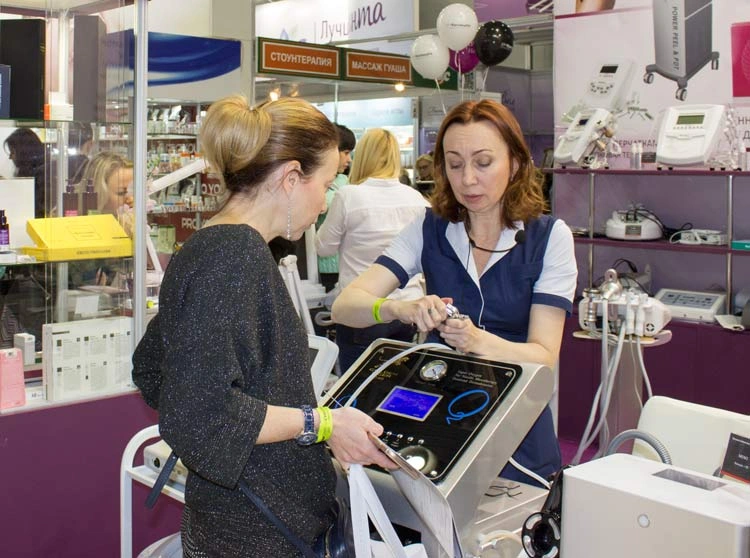 Часть нашего стенда была посвящена аппаратной косметологии, где были представлены аппараты с регистрационными удостоверениями. Наш штатный косметолог с медицинским образованием проводил мастерклассы и подробные консультации для клиентов.