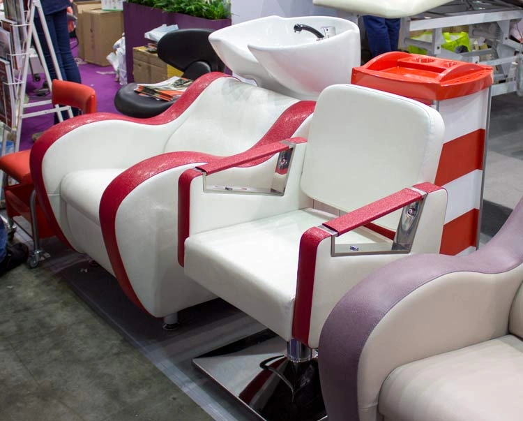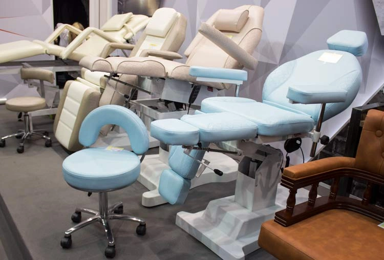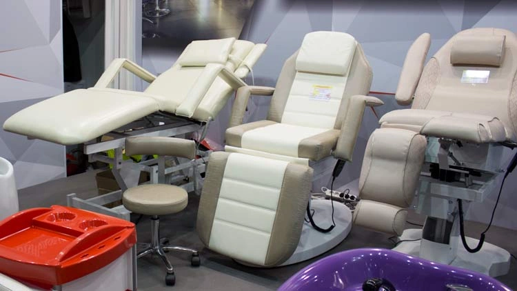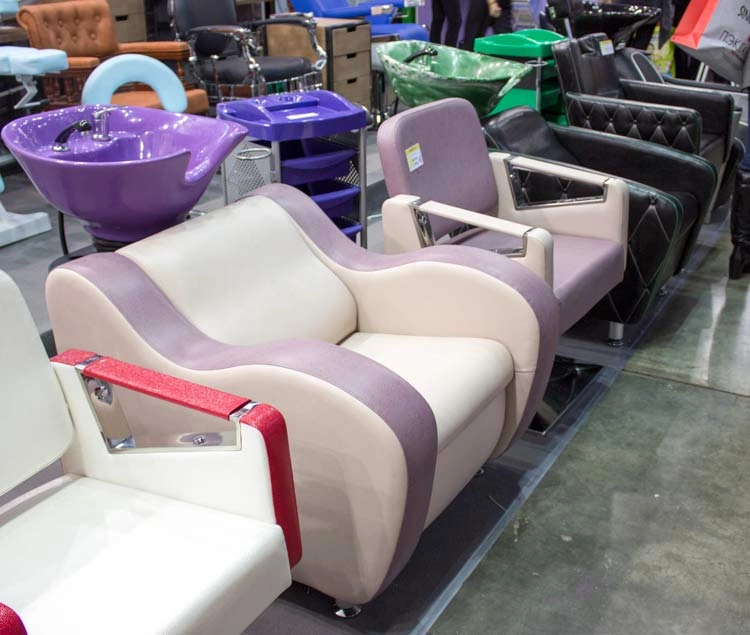 Вторая часть стенда демонстрировала яркие новинки оборудования для бербера, кресла для педикюра и косметологии.