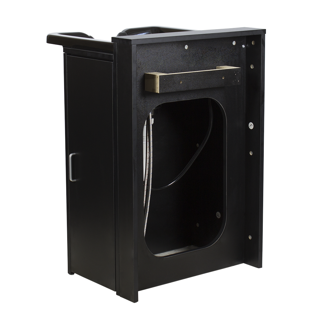 В каталоге интернет-магазина Мэдисон пополнение товаров! Покупателям представлена новая модель парикмахерской мойки без кресла – МД-212. В ее комплектацию входит средняя черная раковина из ударопрочного пластика, корпус с дверкой, сантехнические приборы. Материал корпуса: прочная ЛДСП черного цвета с текстурой под дерево. Боковая дверка позволяет беспрепятственно выполнять обслуживание и ремонт инженерных коммуникаций. Подключение к инженерным сетям осуществляется сзади, в средней части корпуса.